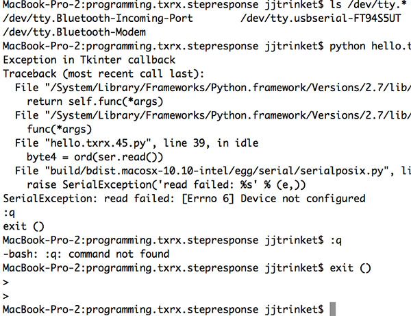 But nothing happened. So I quit out of the Python application. When I returned to Terminal I still didn't have my prompt, but had a carot instead of my shell. To return to the shell, typing "control-C" worked.