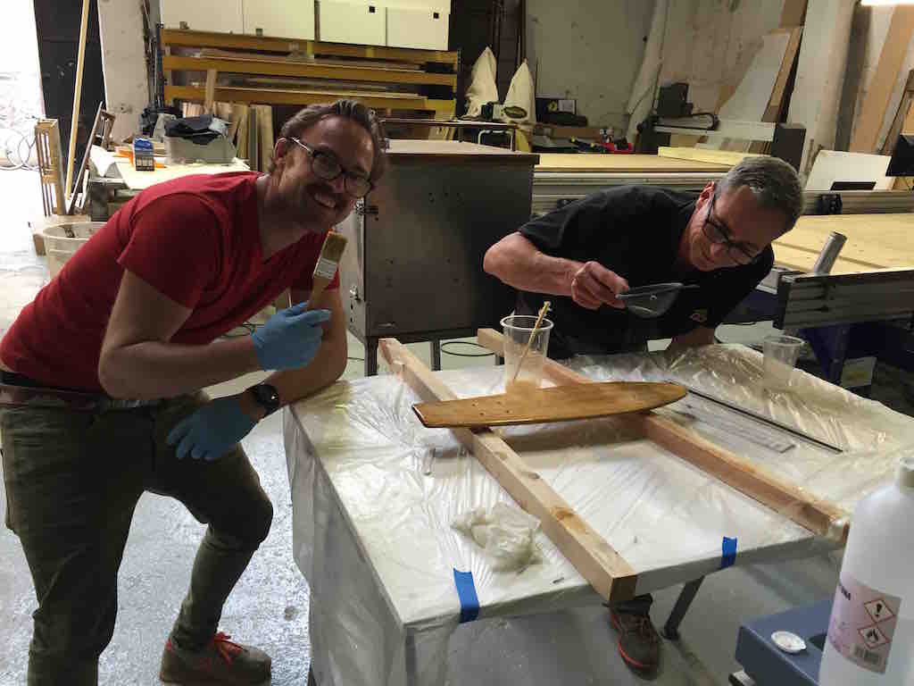 I got it out of the vaacum table and realized that the back of the board did not bend as much as I wanted. The reason could be that the foam is not hard enough to bend the bamboo so I would use a foam but wood to bend the bamboo.