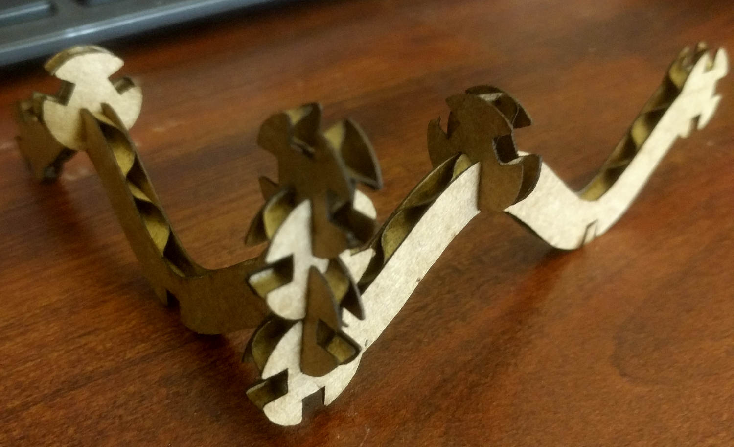 I have many fond memories of playing withK'Nex as a child. The defining feature of K'Nex are the long, thin connectors that enable large, rigid constructions to be put together rapidly. I have also been experimenting with repeating patterns like sin waves in my personal art lately, so I decided to combine those two concepts into my press-fit kit