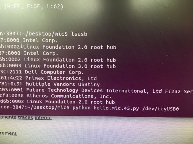 I used the same coding process we used in the past, but used the hello.mic.45.py python code and hello.mic.45.c C code