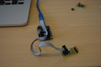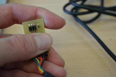 Having already milled the hello board, I took this opportunity to learn from Vincent Dupuis how to etch boards (although it is strongly disapproved by Neil).
