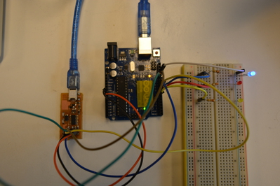 I have mounted the LED 9/10/11 as recommended in the FabISP code to provide information about the ongoing programmation process: blue = heartbeat; yellow = programming ; red = error.