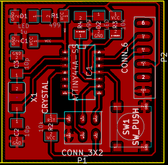 I am relative beginner with KiCAD. I have redrawn the HelloBoard. The major difficulty is with the libraries creation: I managed to create my own modules (for the push button, for connectors, for the quartz), but in the end, I can only have one library. So all the modules end in one unique library...