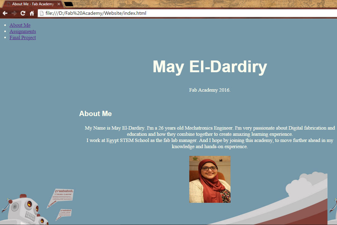 After doing that simple website, I was advised by our mentors to start using templates as they are more effective and more quick.