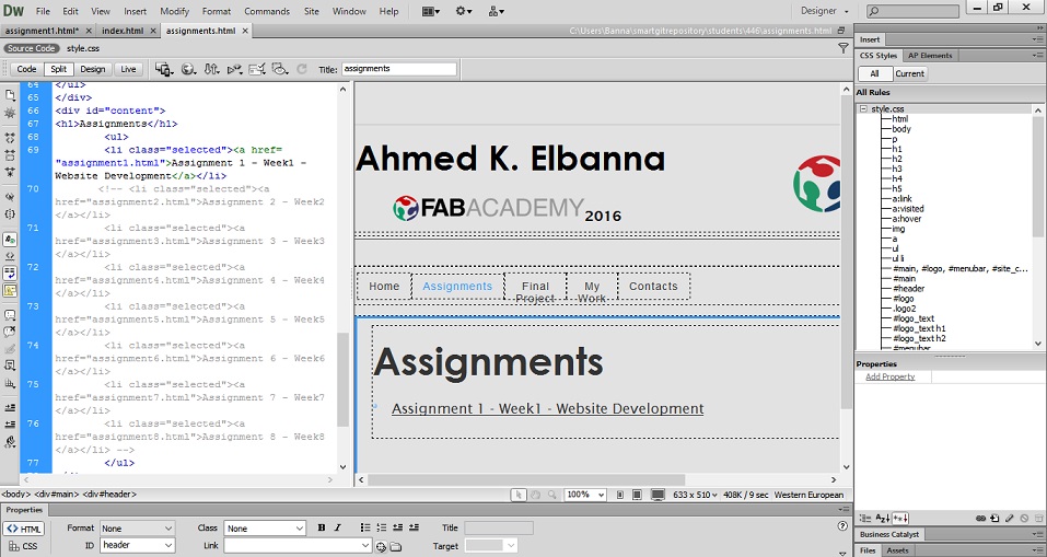 • I prepared more than an assignment page html file and linked them to the main assignment page but for now i made the links commented so that not to be active or seen in page to make it easy to modify or add new assignment quickly in the future.