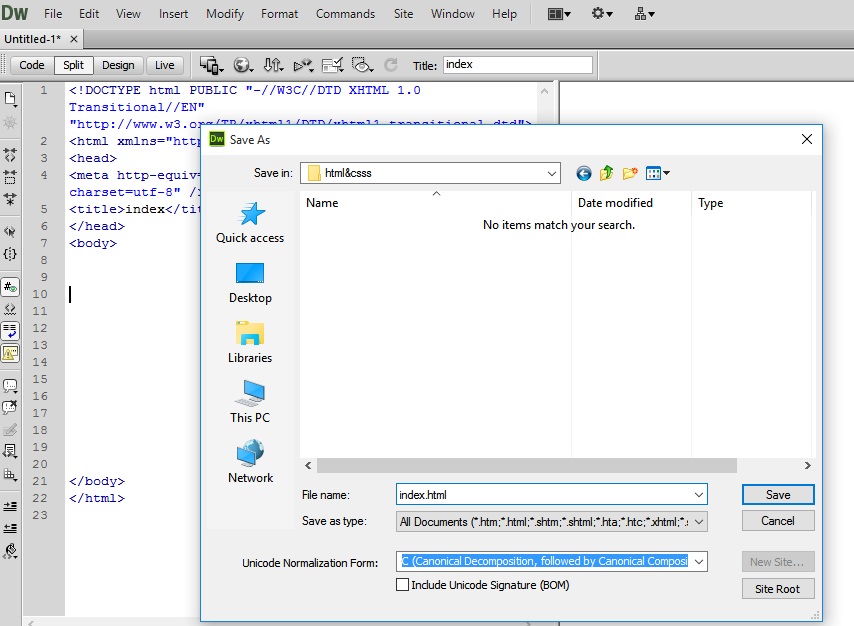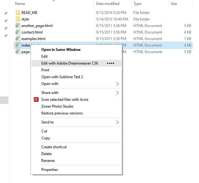 • I downloaded the zip file and extracted it in my sites folder (html&css) and opened the index.html file with dream weaver