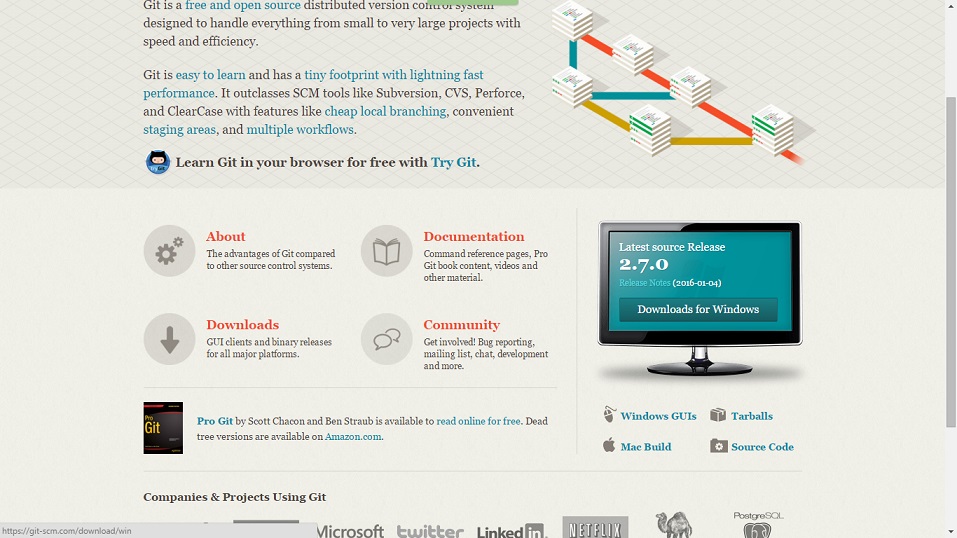 • After I finished writing every thing, it was time to start using GIT, I'm using Windows 10 so i downloaded it .
