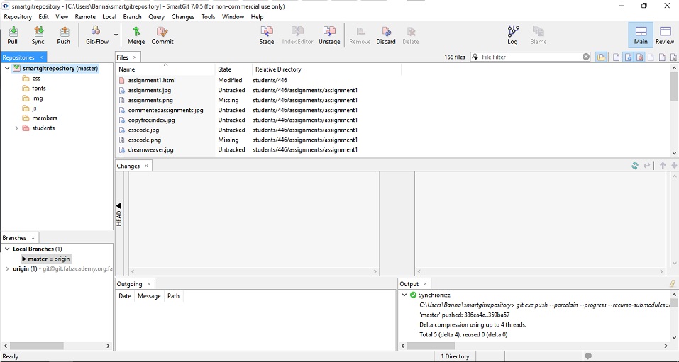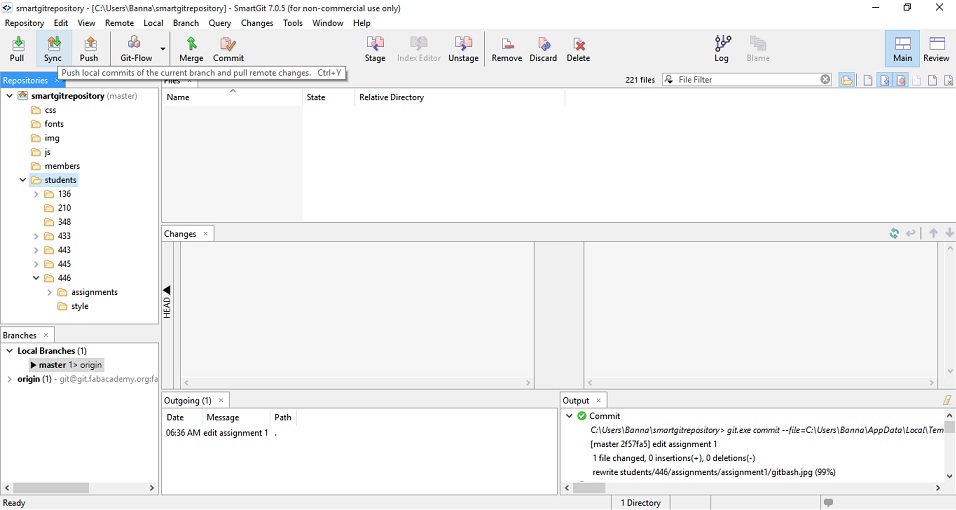 • I copied my site folder to the specified repository folder then i pressed sync. after pressing stage and commiting for the first push.