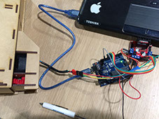 The Extruder is controlled by an Arduino Uno board using a Shield for controlling stepper motors.