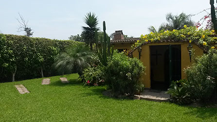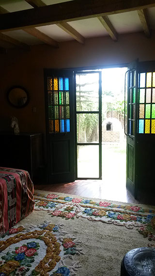 This is an old house with a lot of green areas... but, very dark inside because of the small windows.