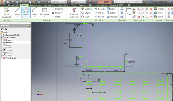 At first Inventor was no easy to understand but our coach Gonzalo Siu give me some examples of practices and commands, based on that i start understand how to design in CAD approach and also parametric design