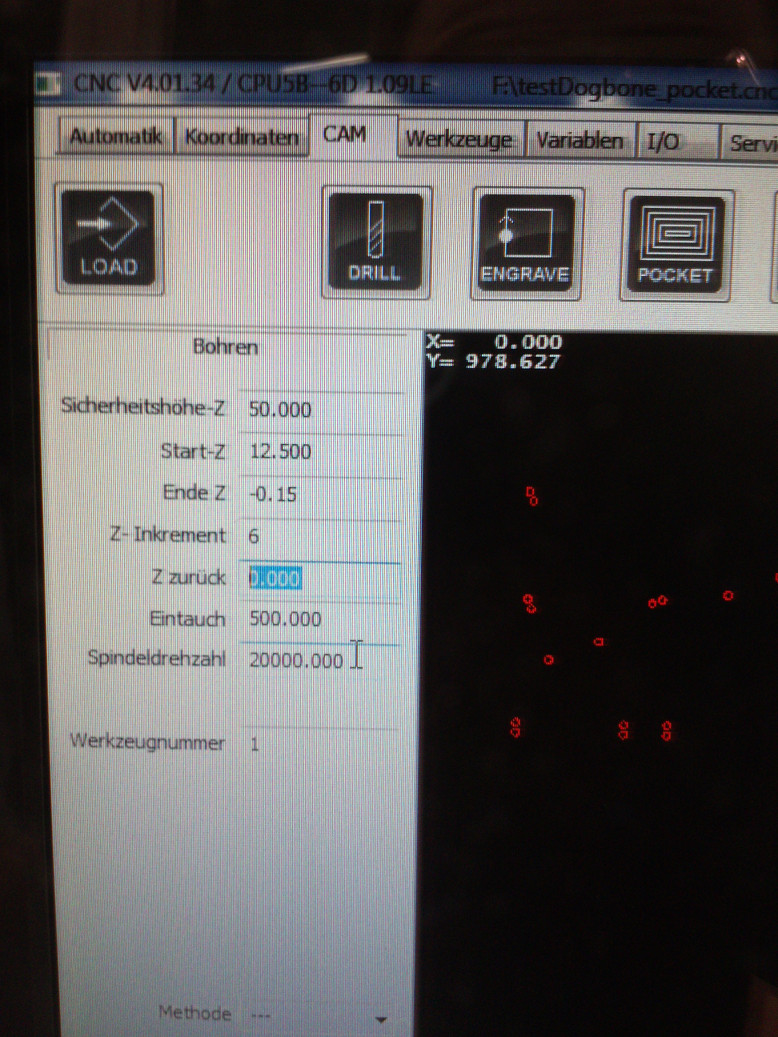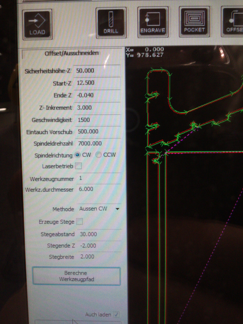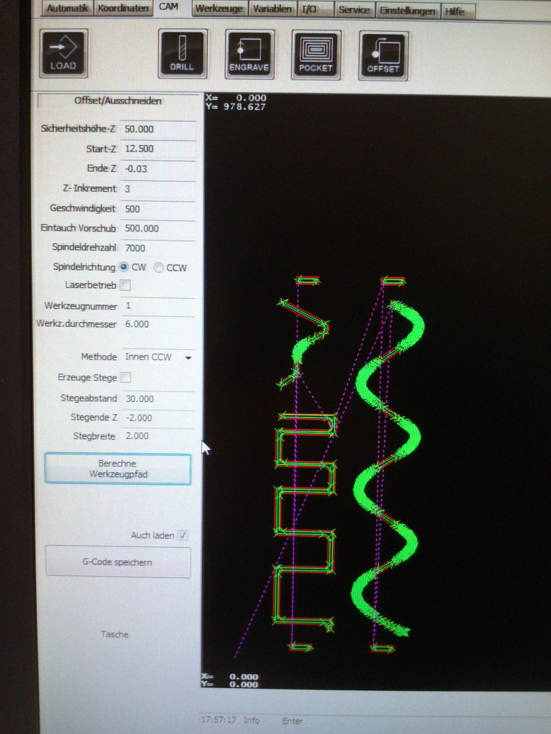 I started to mill the inner structures (cf. fig. 13) with spindle speed (Spindeldrehzahl) 20000.