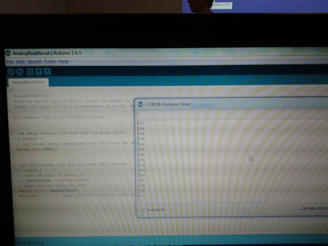 Next up I attached a flex sensor to arduino and wanted to see what happened. Below you will see the video of the flex sensor. I have not sewn it in yet, but rather just taped it up and checked what happened on my serial monitor in the arduino programme. It was pretty awesome! So you will see that on one hand, the LED was blinking when I flexed the sensor, because we had programmed it to pick up a minimum and maximum flex reading and then make the LED light up. Secondly below you will see the reading which indicated the maximum and minimum in order for the programming to be done and so that the LED would blink. I am now considering what and how to impliment these elements into my final project.