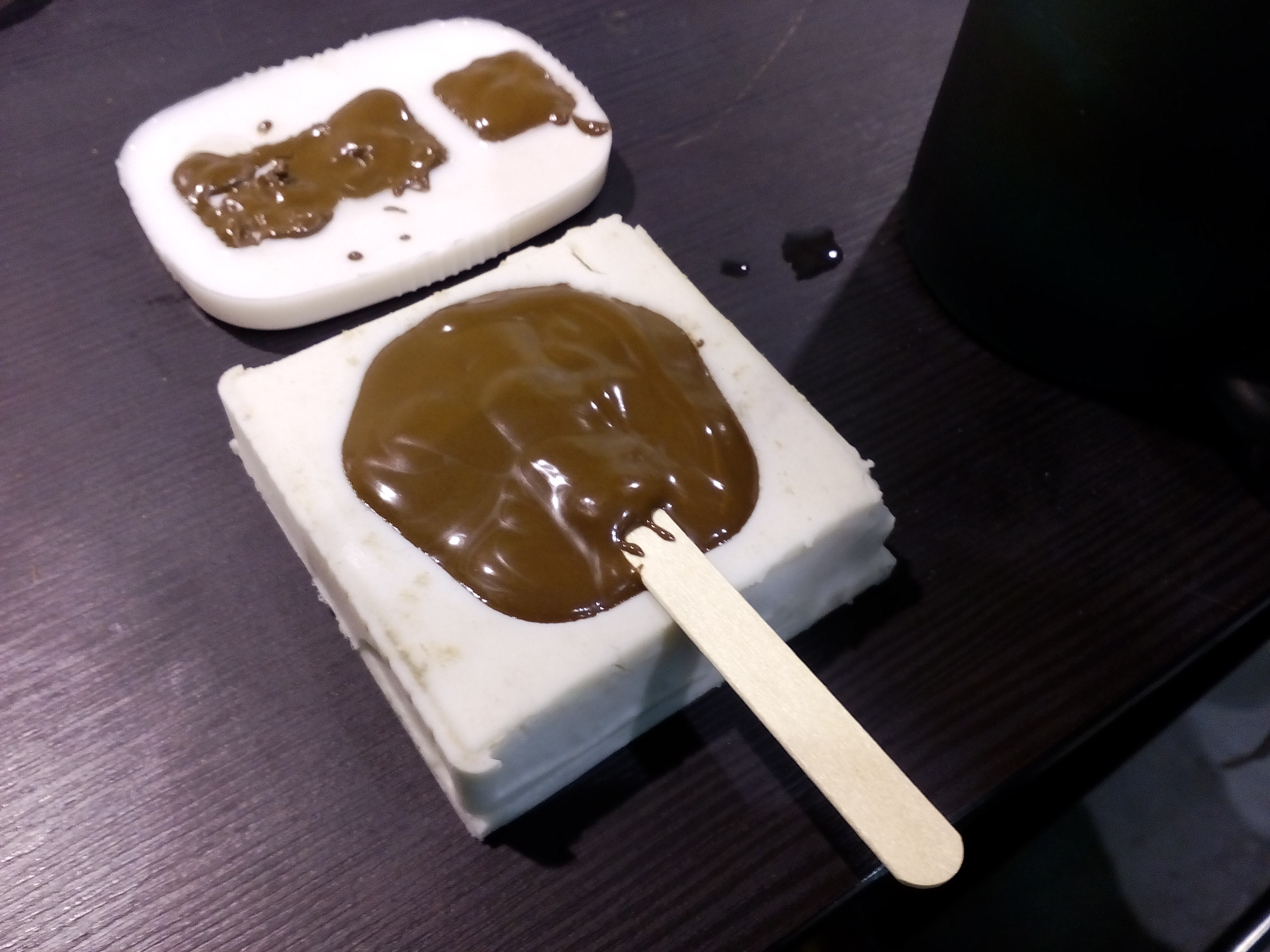 Так или иначе, у меня получилось извлечь форму, но в ней остались кусочки мдф, которые я растворил в горячей воде, окунув туда форму.