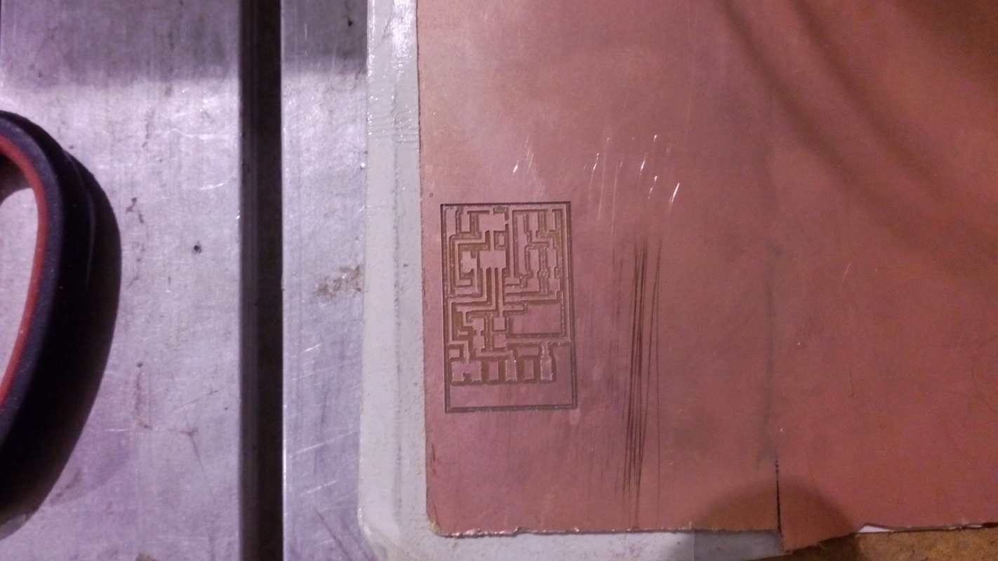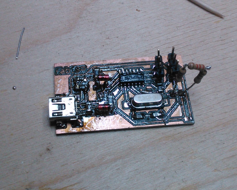 After failing first final evaluation we decided to remake stuff we didn't do fine and producing ISP was the first of them. This time we made version of FabISP by Ali and tried to program it. The way to do it right is milling fr1 textolite on a routing machine. I made g-code using fabmodules.org: