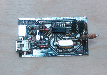 По всей моей плате был размазан флюс, и я попробовал его растопить строительным феном. Когда фен сдул ISP порт и один из стабилитронов, я забросил эту затею и попробовал паяльник. Паяльник, видимо, был грязный, потому что на плате остался след припоя, тут я решил, что с менять хватит, и залудил всю плату, теперь она у меня красивая серебристая плата.