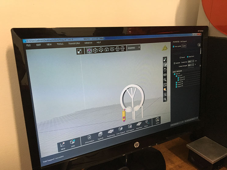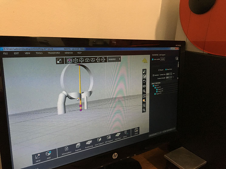 If you want to print in this machine, you have to charge your STL archive, but if you want to print inmediatly it wont be possible to print, cause it doesnt have any supports, so one of the most important things is that you have to put the supports, and for me that has benefits and consecuences.