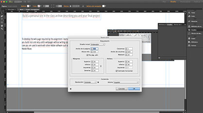First it is necessary to set the layout size, I would recommend you to keep the size as it is by default, however you can change the size as you wish on any stage of the process. As an interesting aspect Adobe Muse gives you the option to design layouts for tablets and smartphones, I didn't do that but could be an interesting perk if you are working on this assignment.