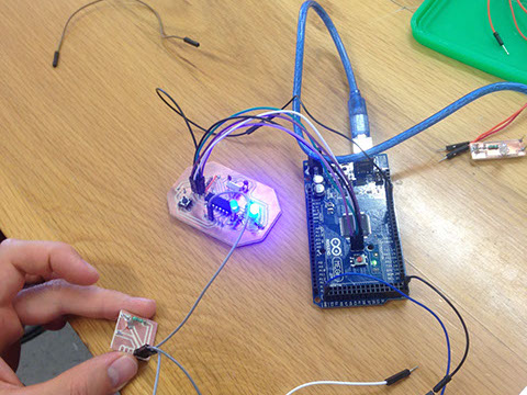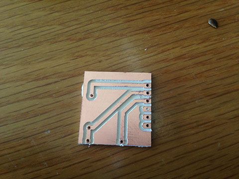 After testing my connection on the protoboard I made the circuit using a copper board and the Modela machine and EAGLE software.