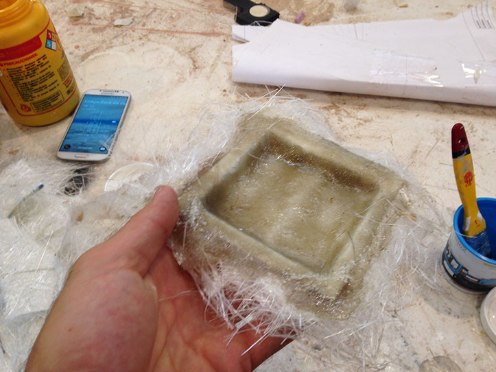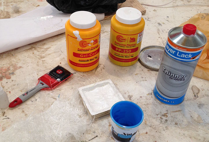 -Once the gelcoat was solid I started placing the fiberglass and the resin.
