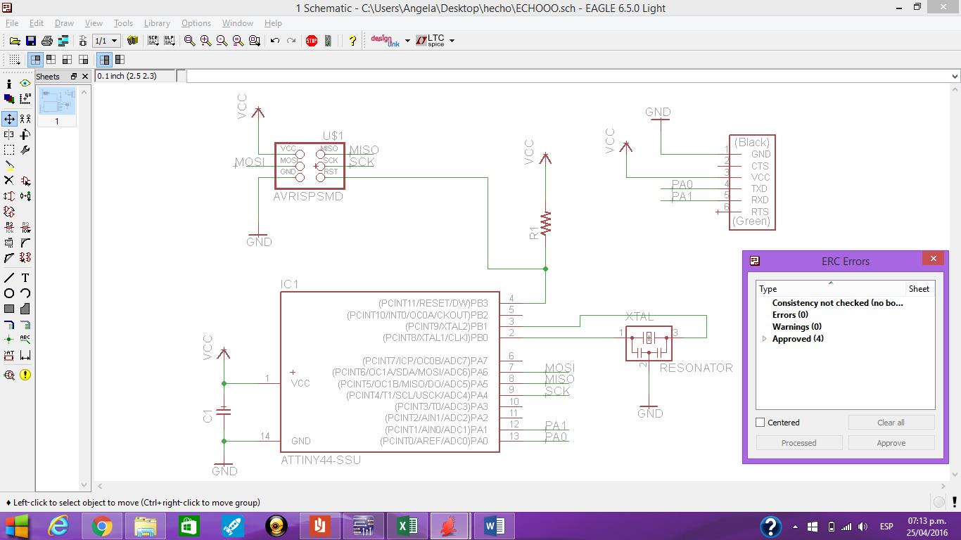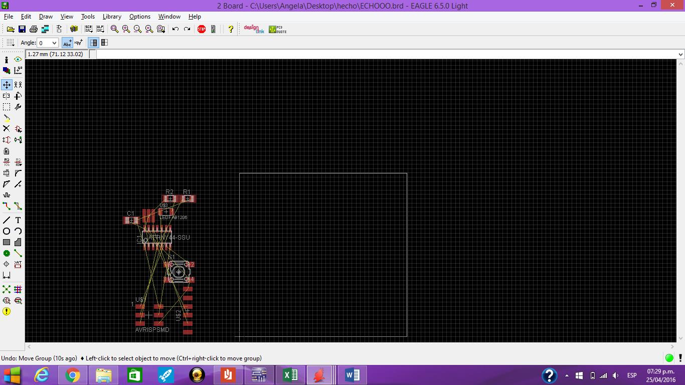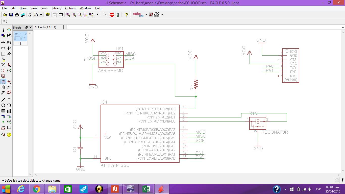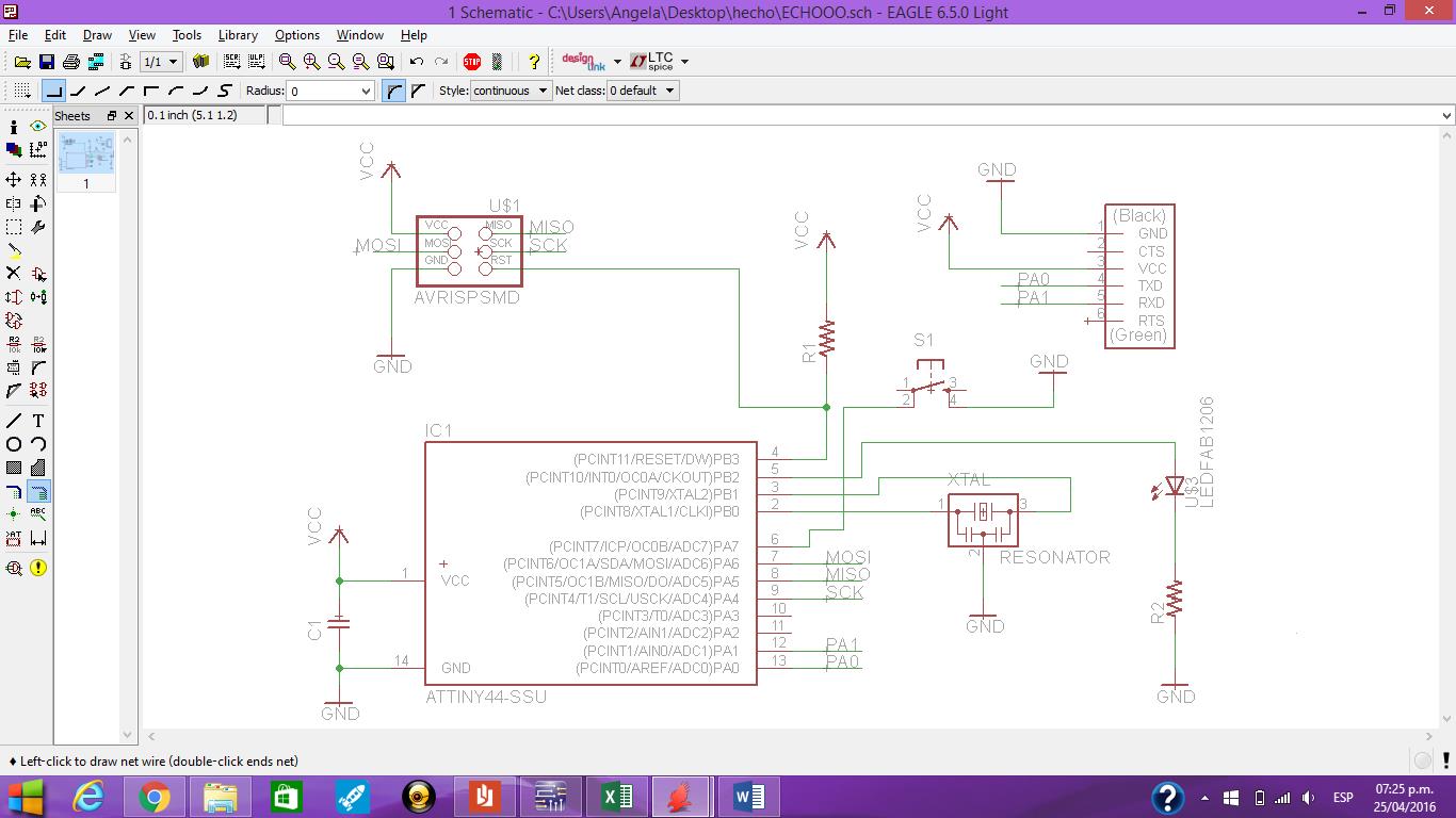 To start developing this task I joined the Eagle where I was adding software components using the library fab.lbr as shown in Fig. The green lines that show the connection between components.