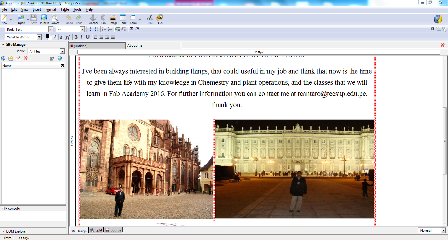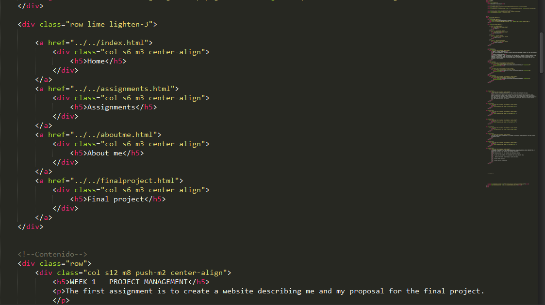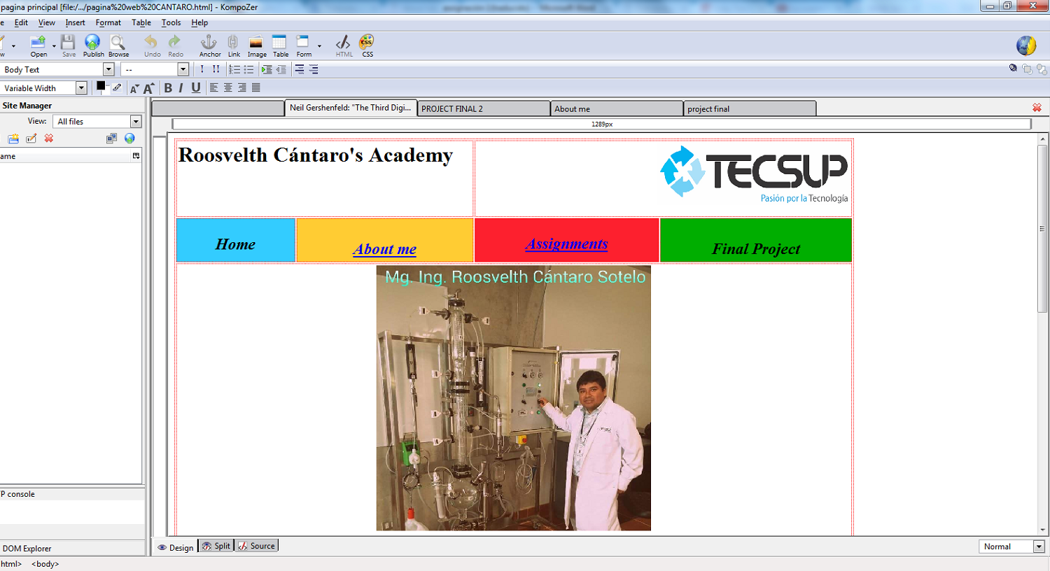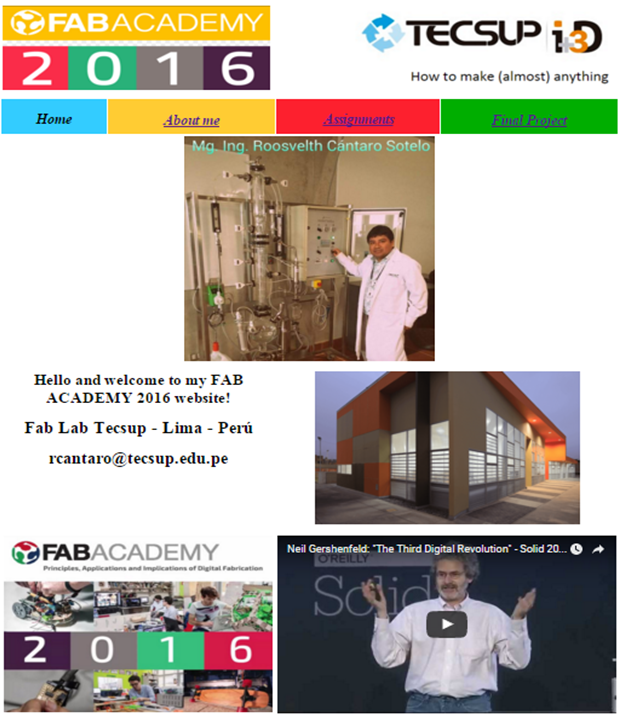 It was necessary to observe many tutorials to learn the operation of the program's tools. Before starting the creation of the website, which will be compiled photos of the presentation. Then, the respective divisions of the content was made, which will depend on the options that have the website. So, the basic options are decided: Home, Assignments, About me and Final Project. Then, the following images are placed: