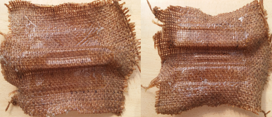 I tested a material (natural jute) for make my composite. I used the 1206 resin and respective catalyst, in a proportion of 1:1 by volume. Before depositing the natural jute in the mixture (1206 resin and catalyst); I covered the 3D mold with plastic to prevent staining.