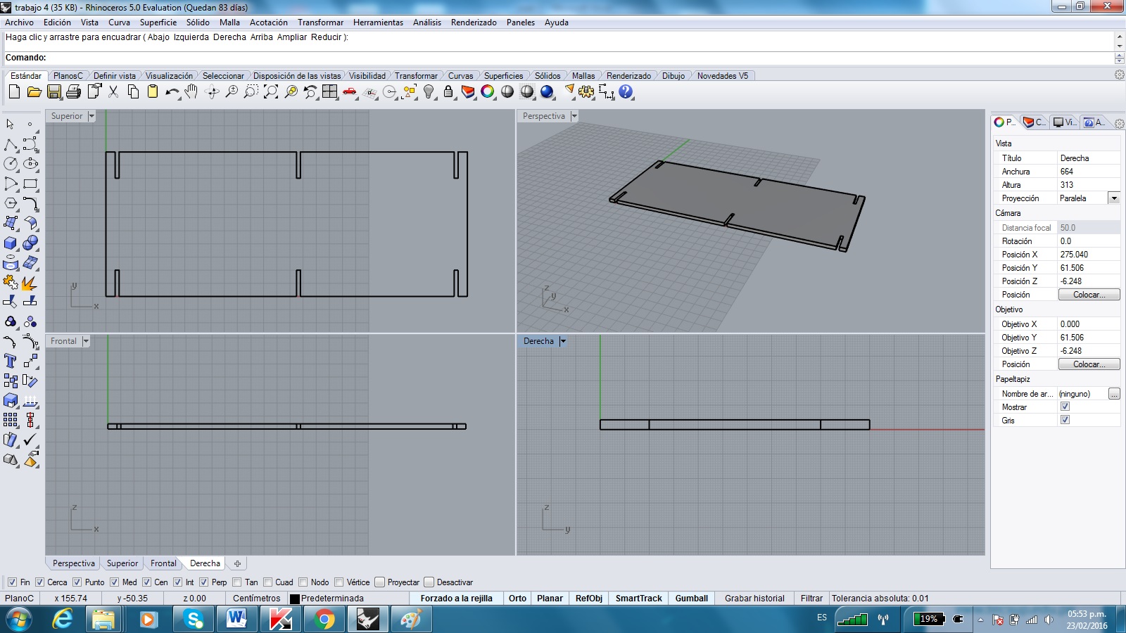 . The problem I found is the lack of information in the part of design with Rhinoceros program, for this consult with teachers and students who have knowledge of design and also through tutorials and so this way I could perform the task of three week.