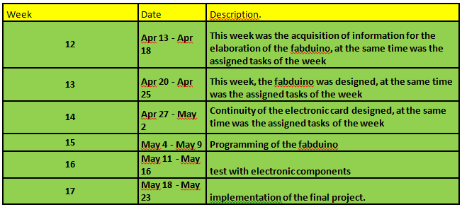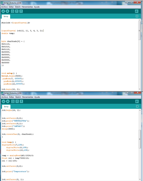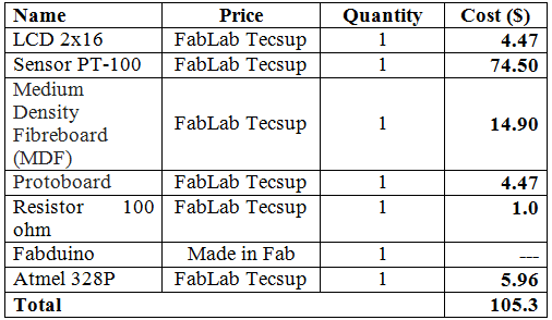 For this Project, I designed a board FabDuino available in the FABLAB TECSUP for can to use programming IDE-ARDUINO, to view temperatures in the LCD, using ARDUINO library.