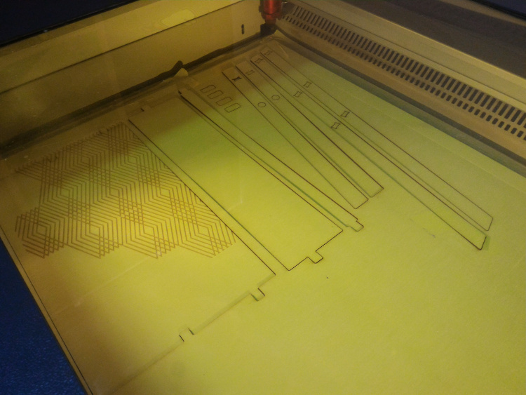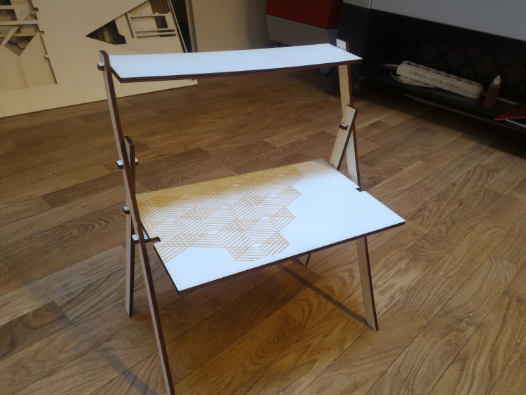 Before going to build the real desk, I was advised to run a model test in the laser cutter to see if my design would hold in 1:1 scale. So I did and also added a cool feature to the desk.