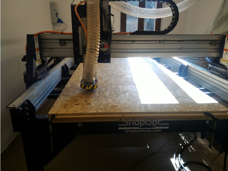 This is the part where you push "START" and sit down trying to relax, hoping you didn't make a mistake with the measurement or setting the machine with the right values. Lirerally, something happened, the thickness of the plywood was off by 2 millimeters and the poor sacrificial layer suffered the consecuences but only for 30% of the time, I saw the problem and decided to stop the machine to enter the new value change what it needs to be cut and resume it all.