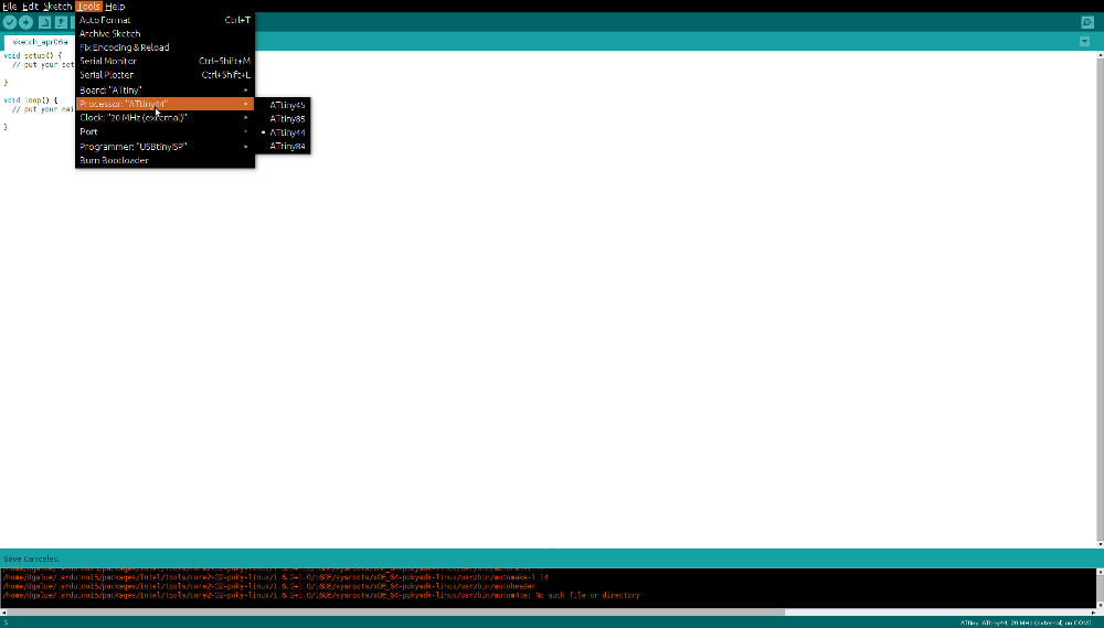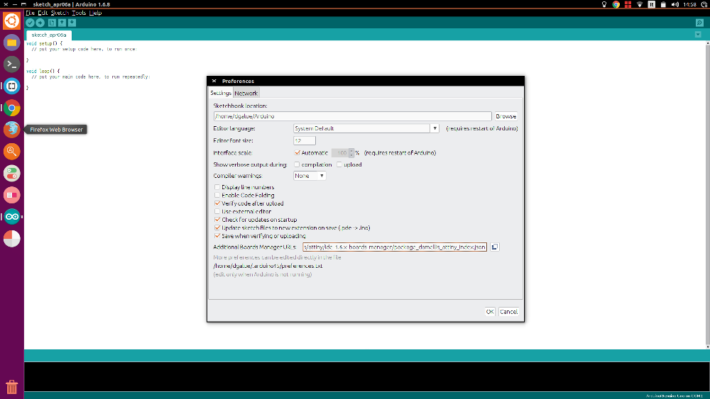 -Concerning the programming, I only had experience with Arduino IDE, so I choose it as the first lenguage to work with the Hello board. To be able to use the Arduino IDE with the microcontroller on the board first I had to download the ATtiny support library from the highlowtech tutorial webpage.