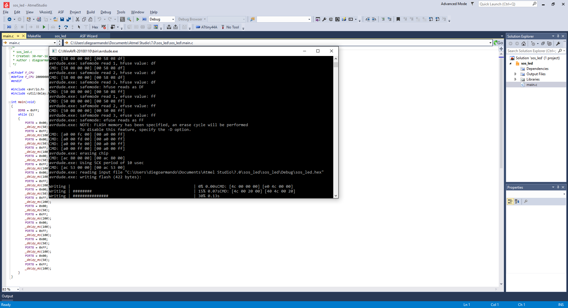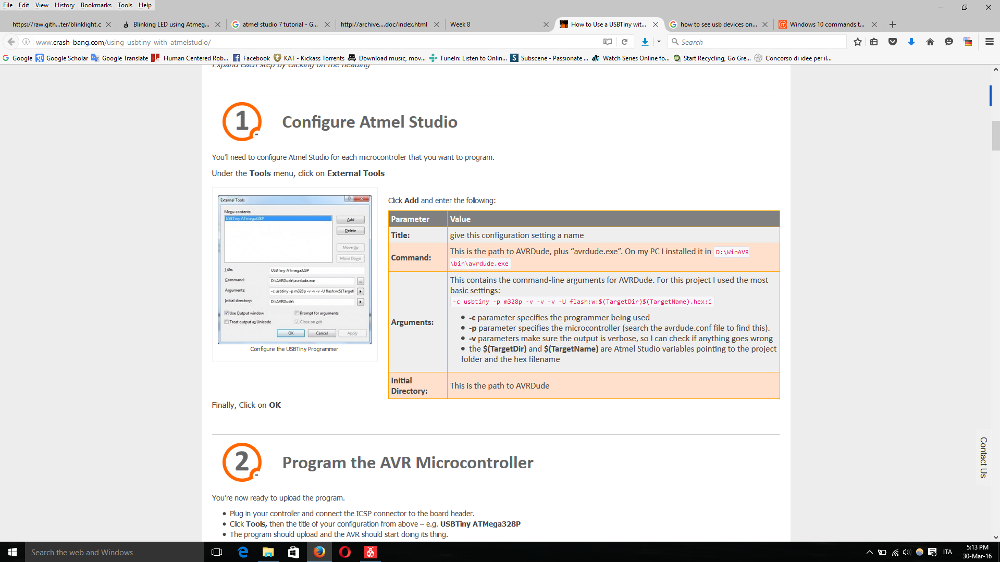 -With this IDE I had to go back to Windows 10 to use it because there is no linux installer yet. Atmel Studio 7.0 in my opinion was really easy to use once you get the hang of it, that is of course, after you learn how to use a USBTiny with it. That means: a) Configure Atmel Studio and b) Program the AVR Microcontroller. But again, before all that, I had to Install WinAVR which contains AVRDUDE, necessary to work with all my boards.