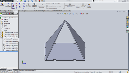 Here there are the first step modelling with SolidWorks: there is a compose piramid, so the steps are: DRAWING-MODELLING-MAKING