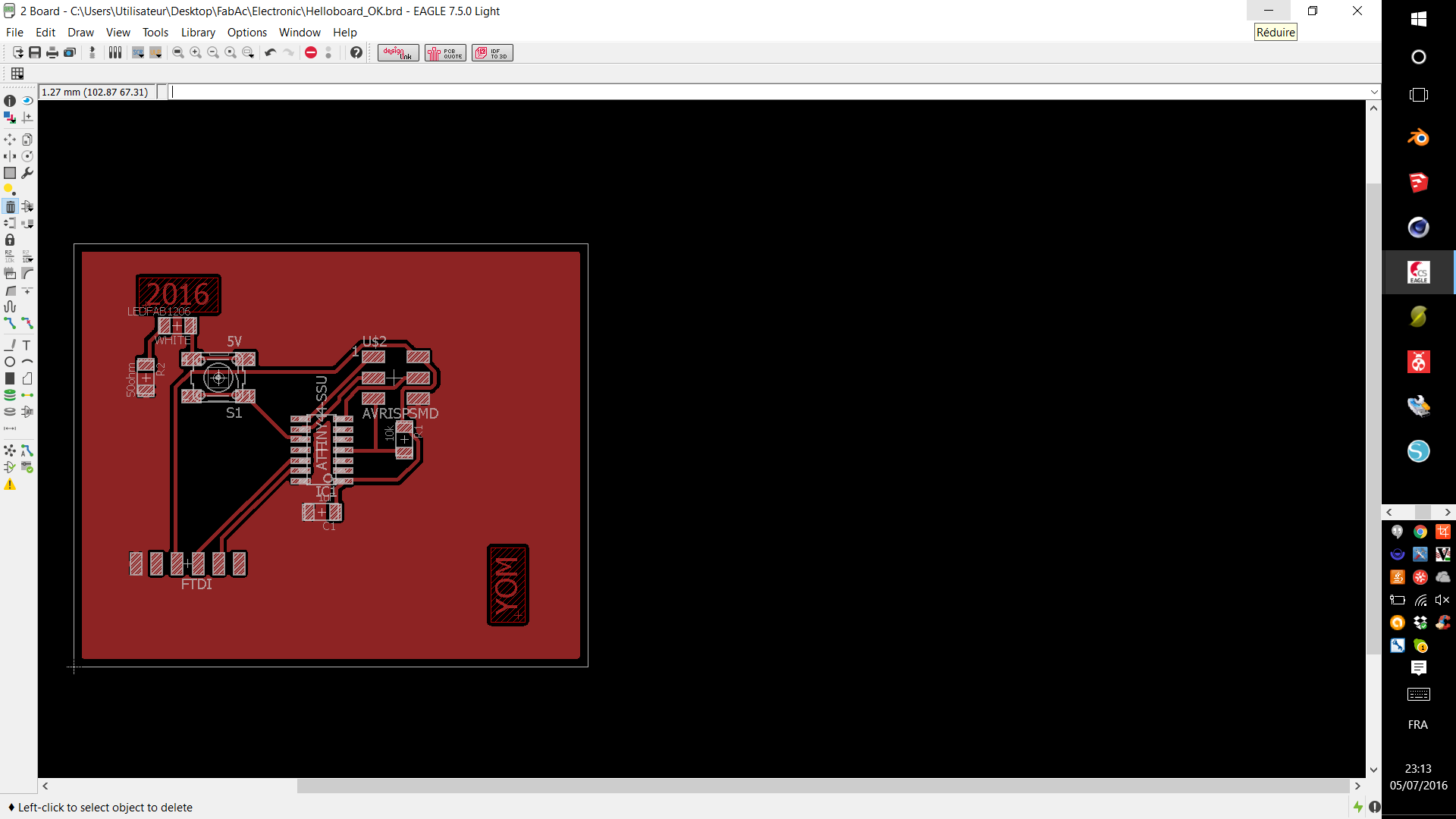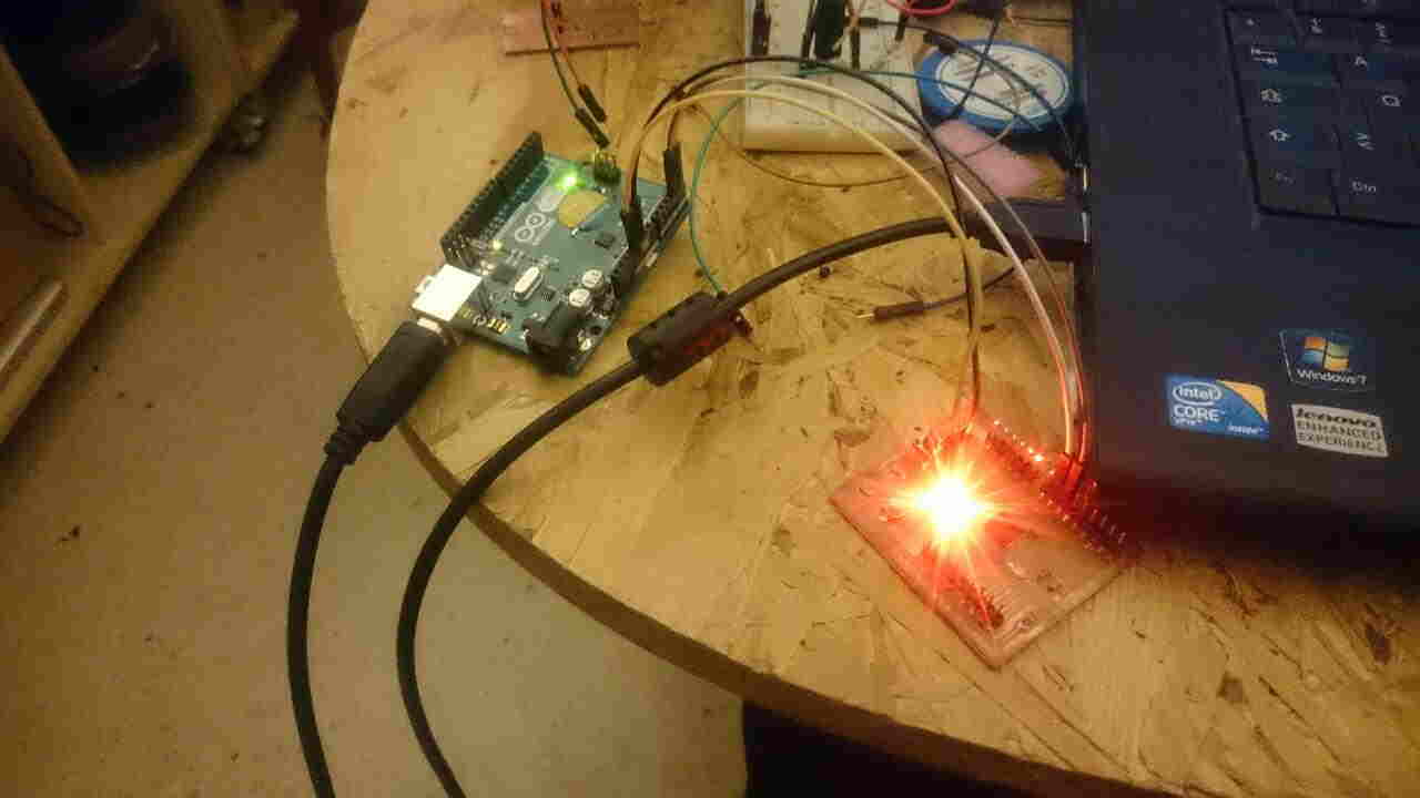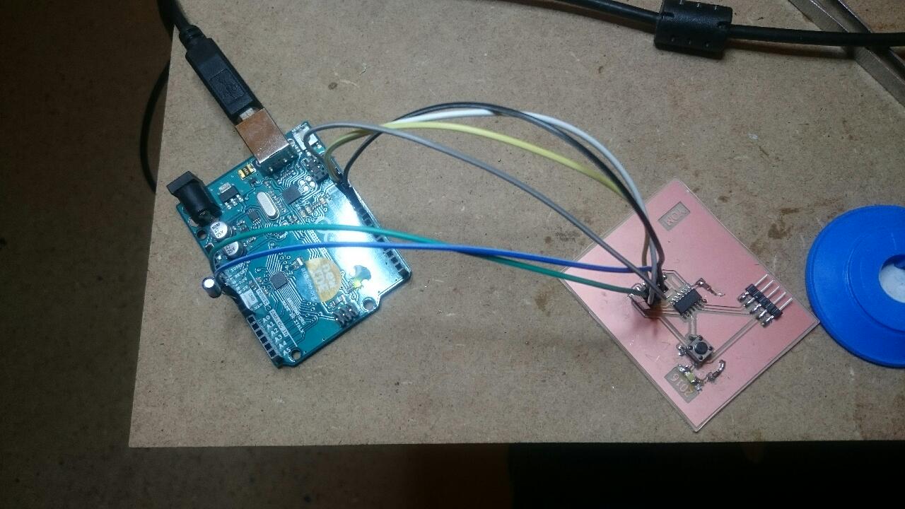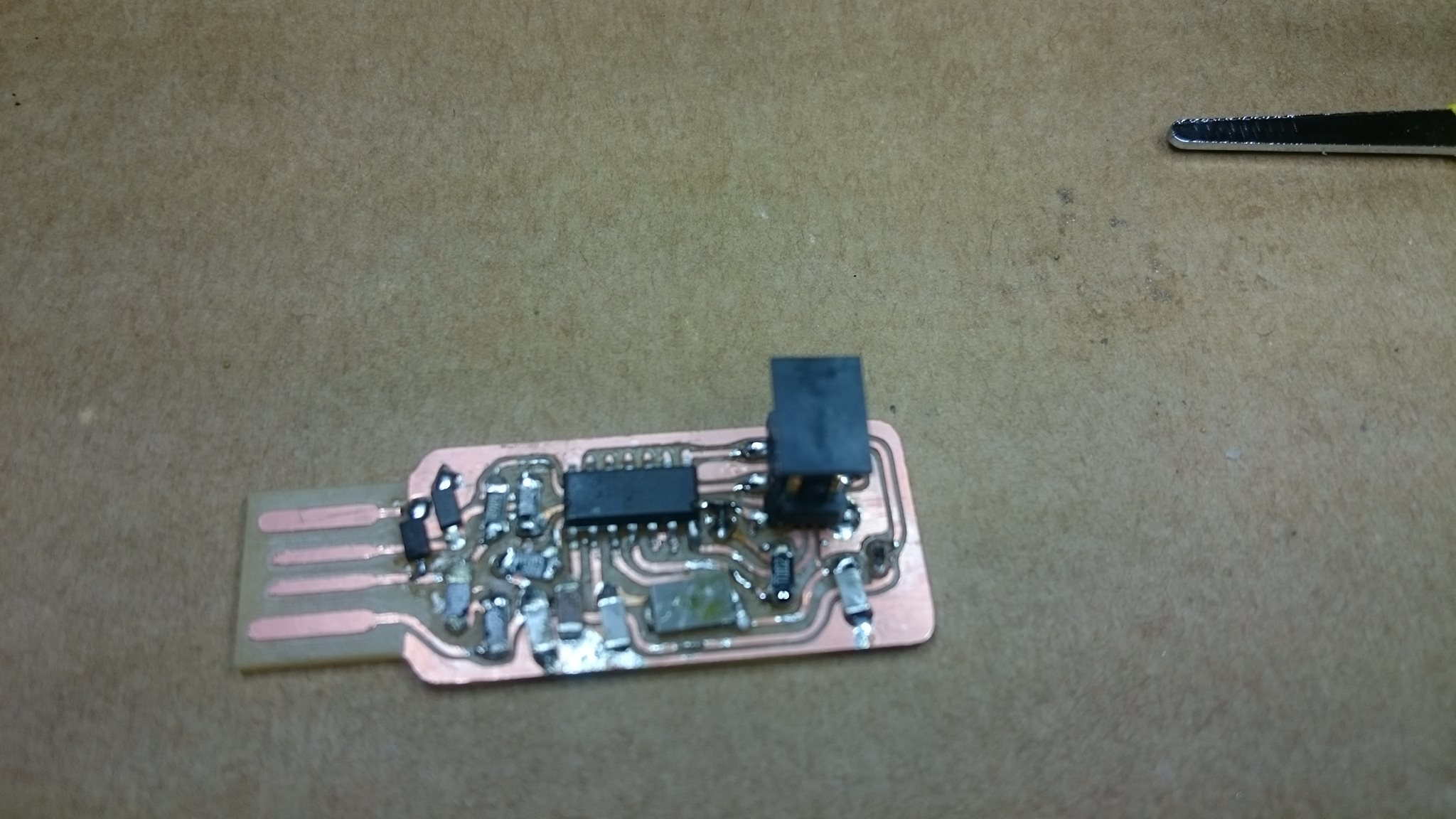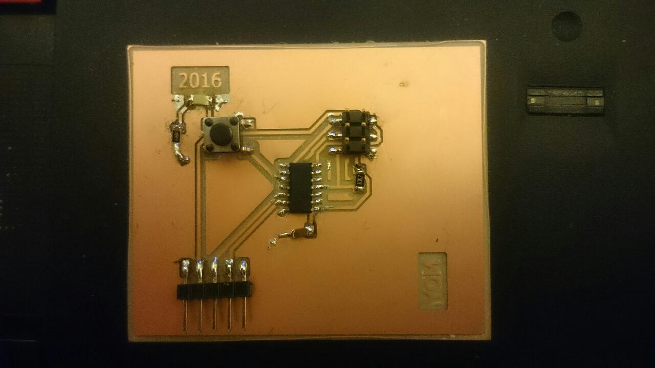 After milling, and soldering. We did try our program with this new board.Here is the result. It works perfectly with our code.