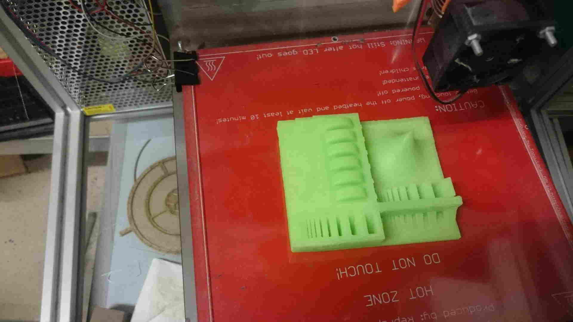 After one night drying, it was very easy to unmould. Plastic helped a lot. As you can see, we did ad some extra material on the sides, since it was way to hard to be accurate.