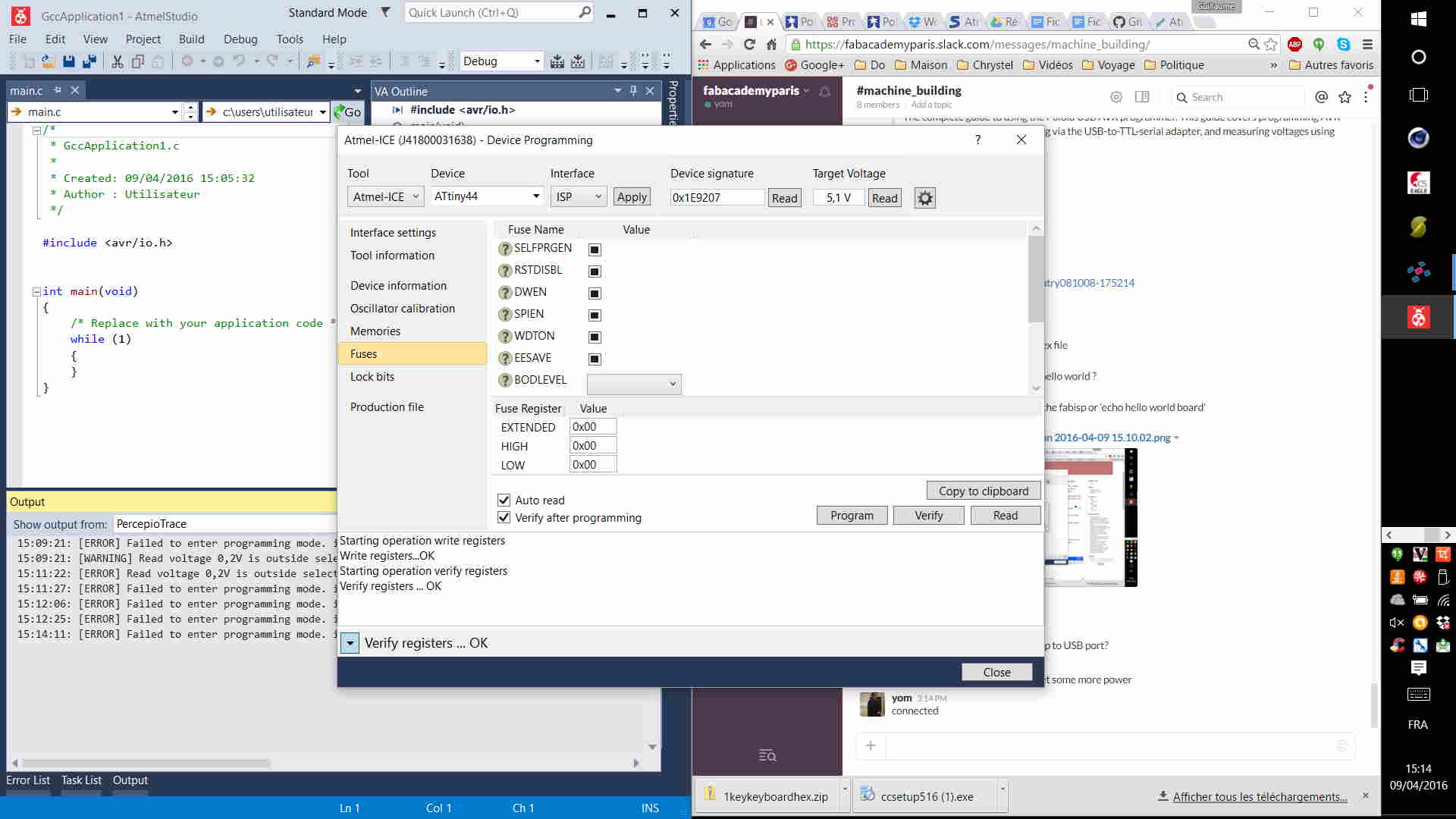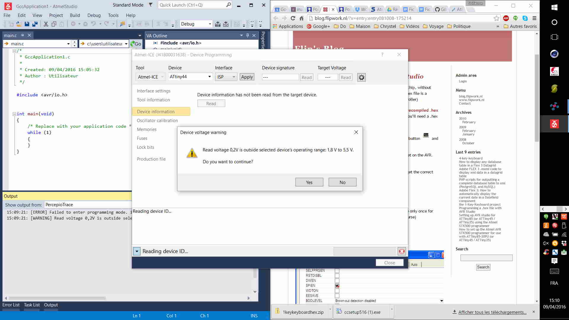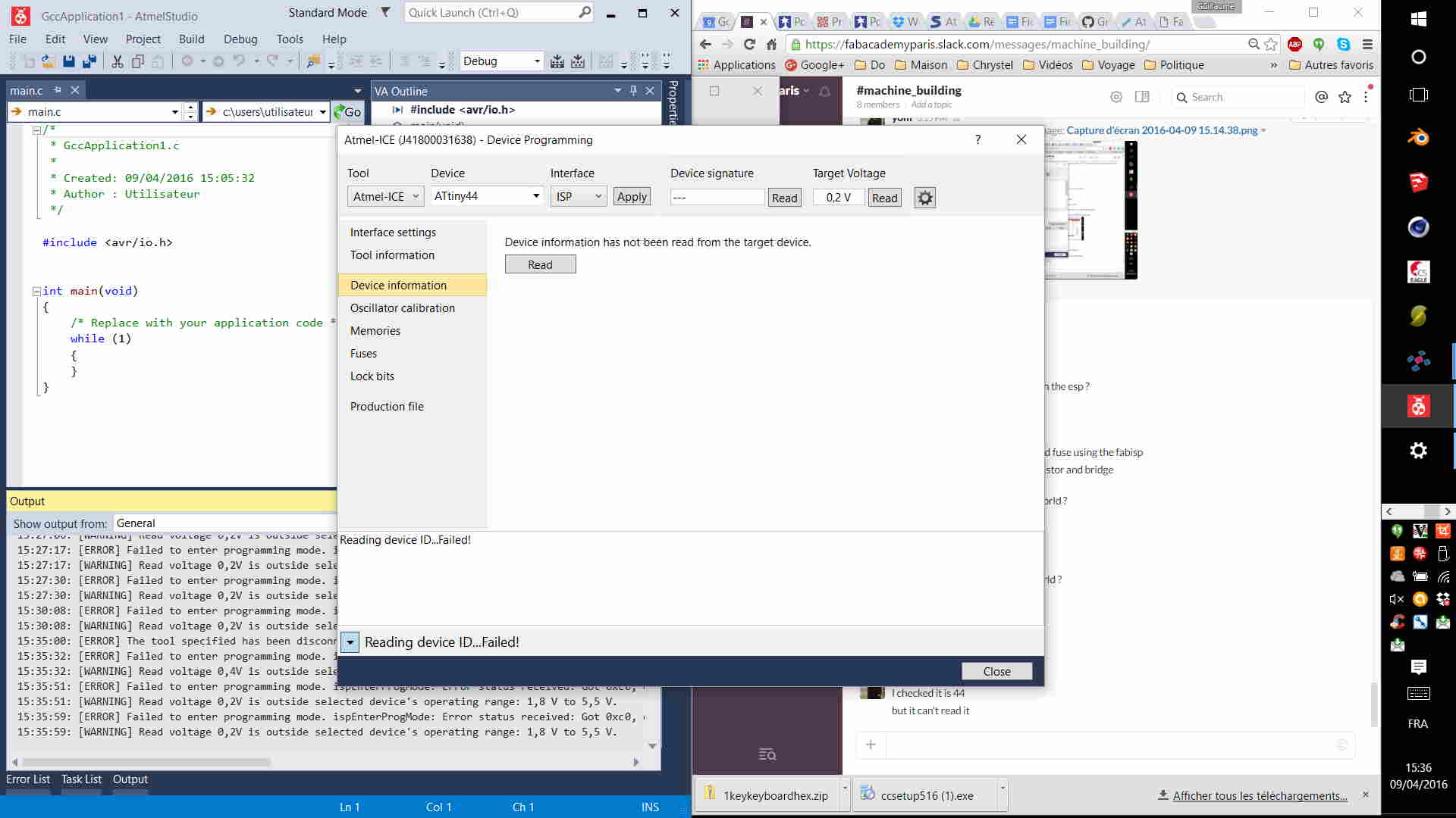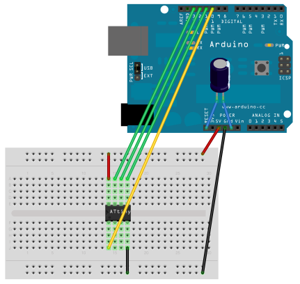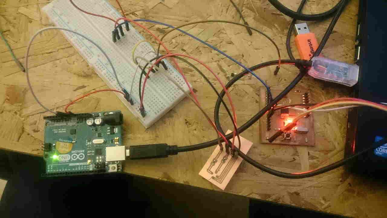 First, you make your aduino an ISP. Then, you upload the program in your controller. We did use the master writer arduino exemple. Then, you upload in your arduino (after you unplug the controller) slave_receiver. You plug then both toghether SDA in the board with A5 in the arduino uno (if mega 21), and the SCL in A4 (or 20 on mega).