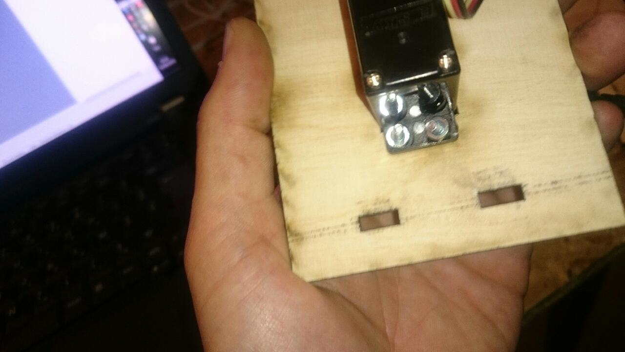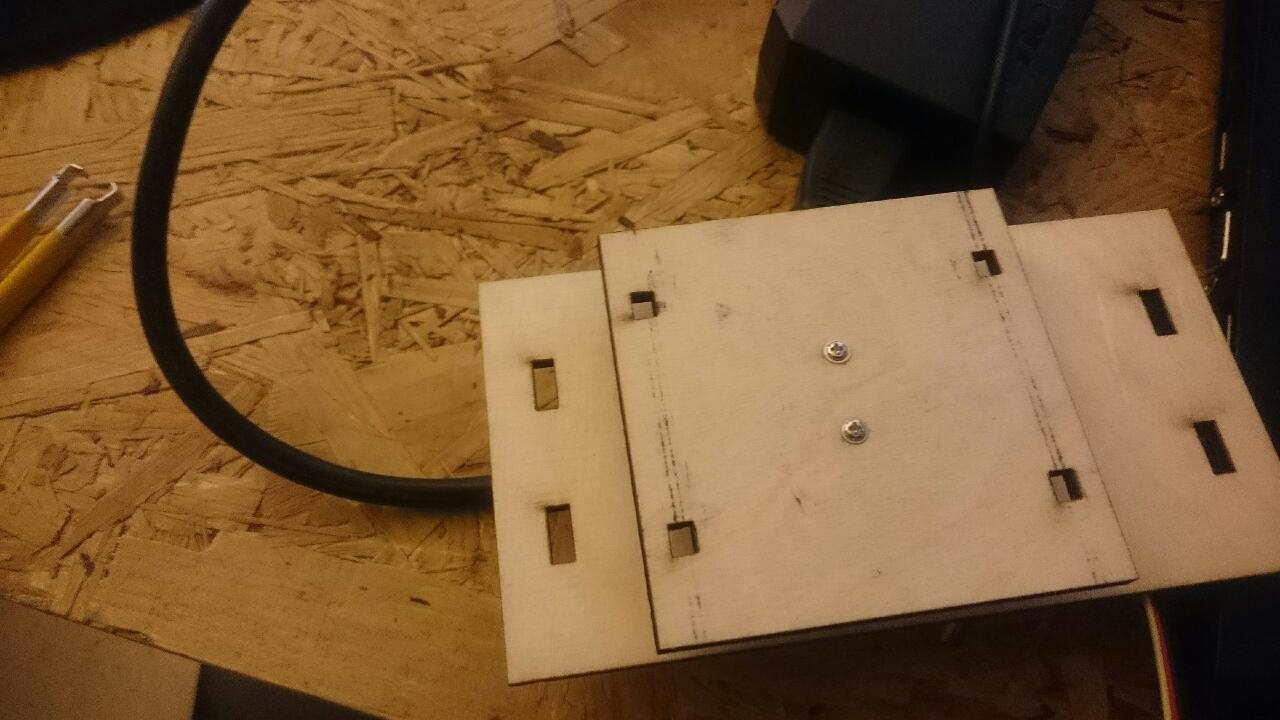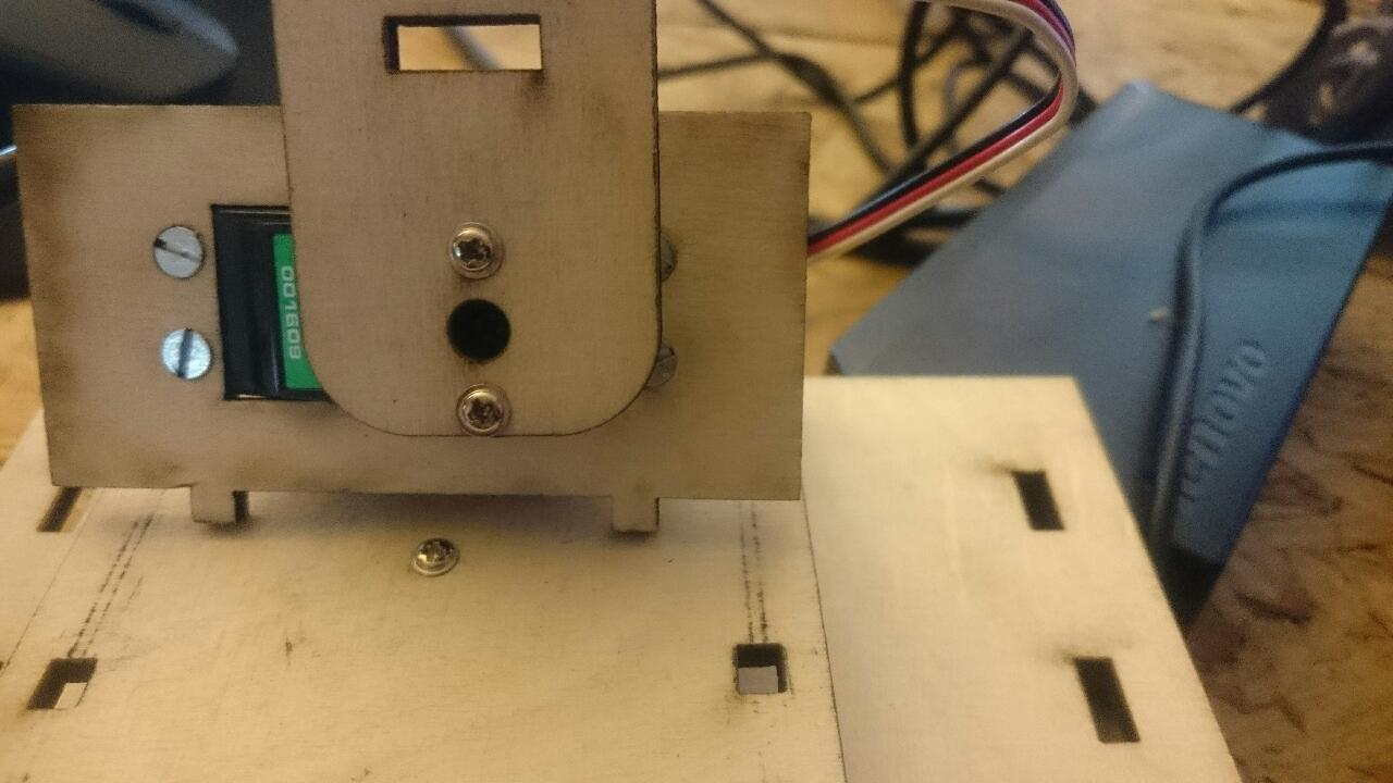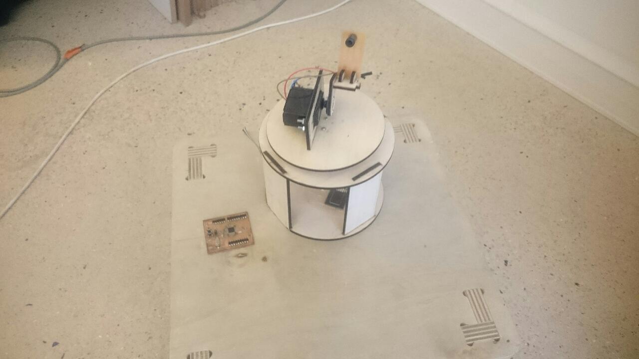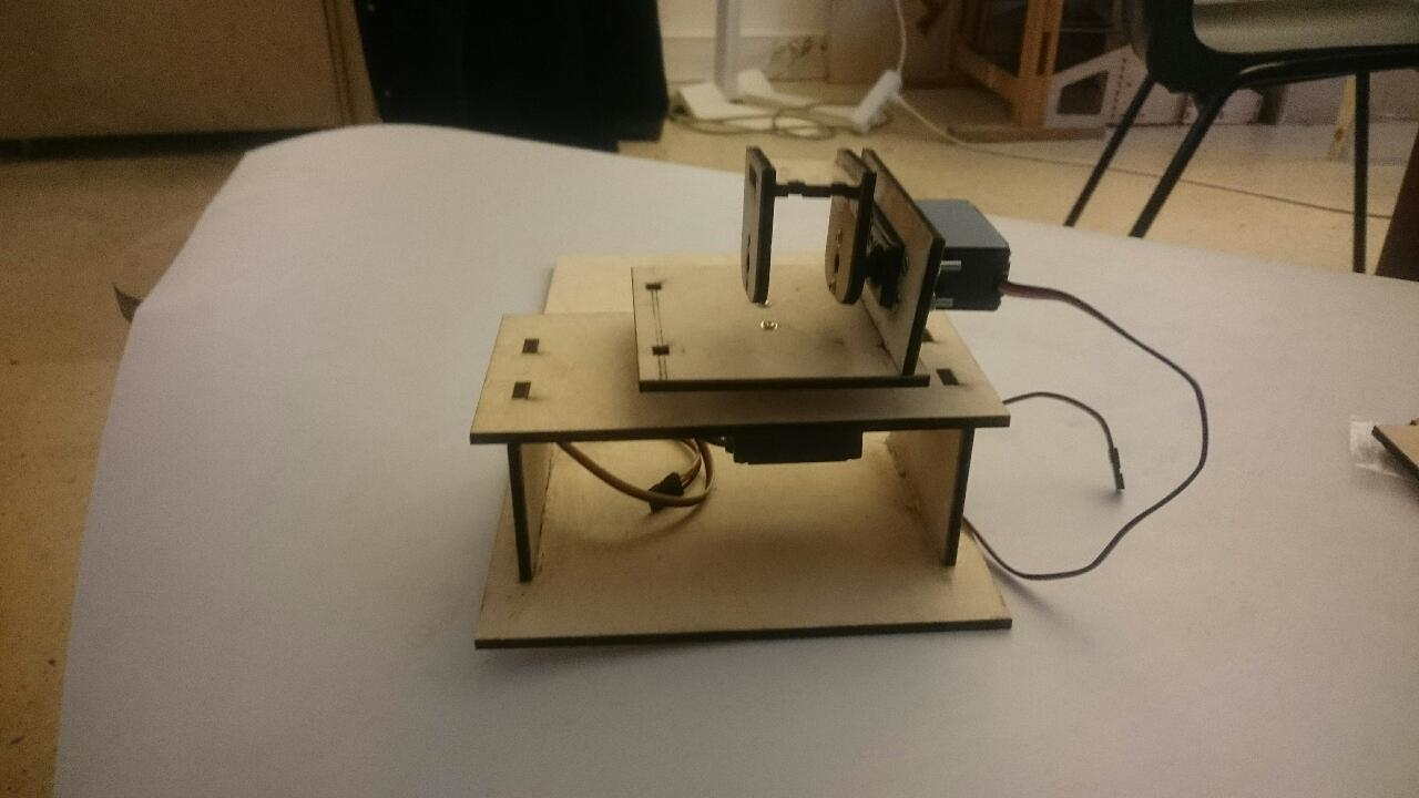 Structure is designed for lasercut. It is a two axis rotating system, controlled by a couple servo motors. The interest in using those, instead of stepper, is that you can make an angle control of your scan, degree by degree, and that you don't need any shield.