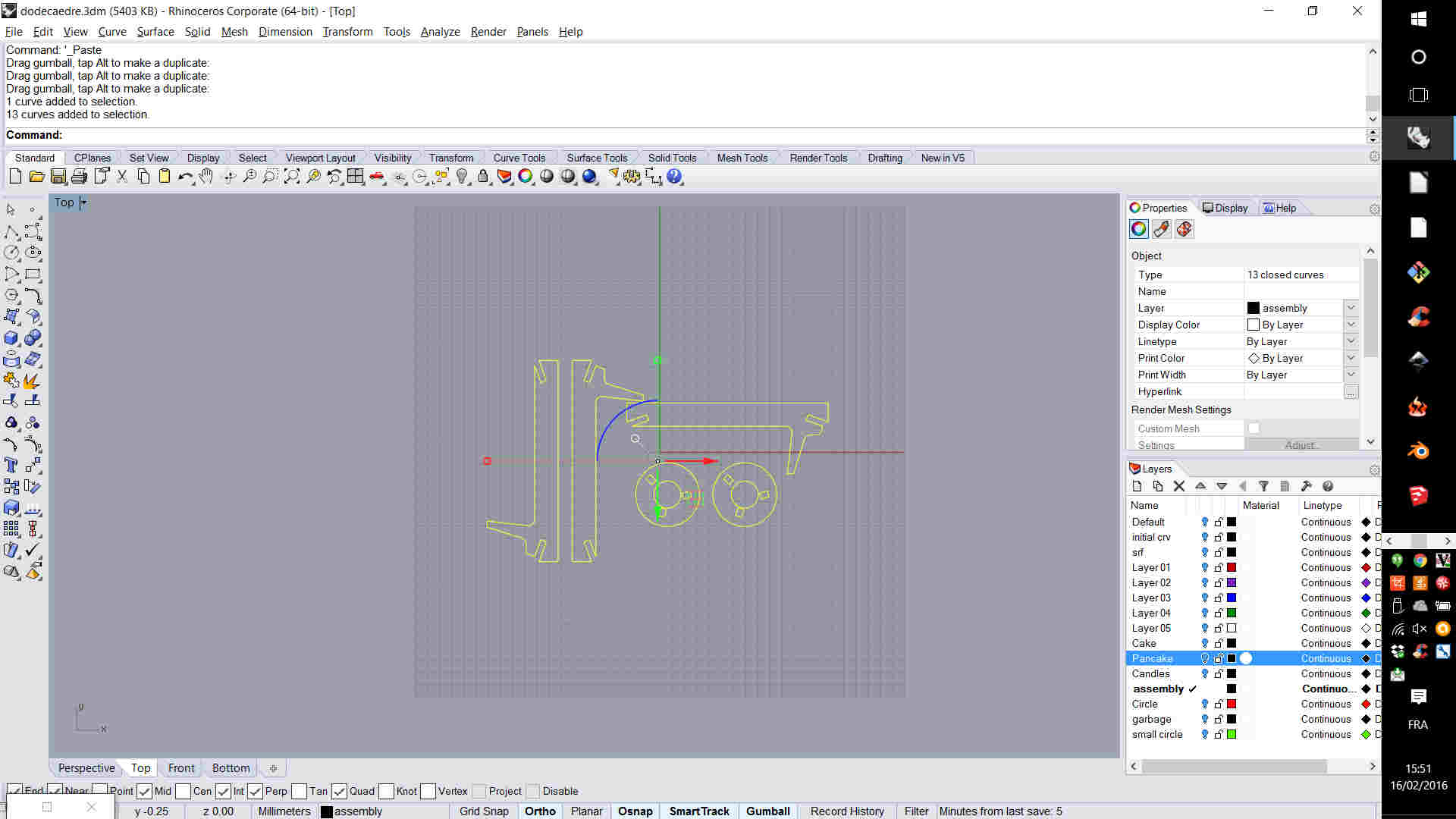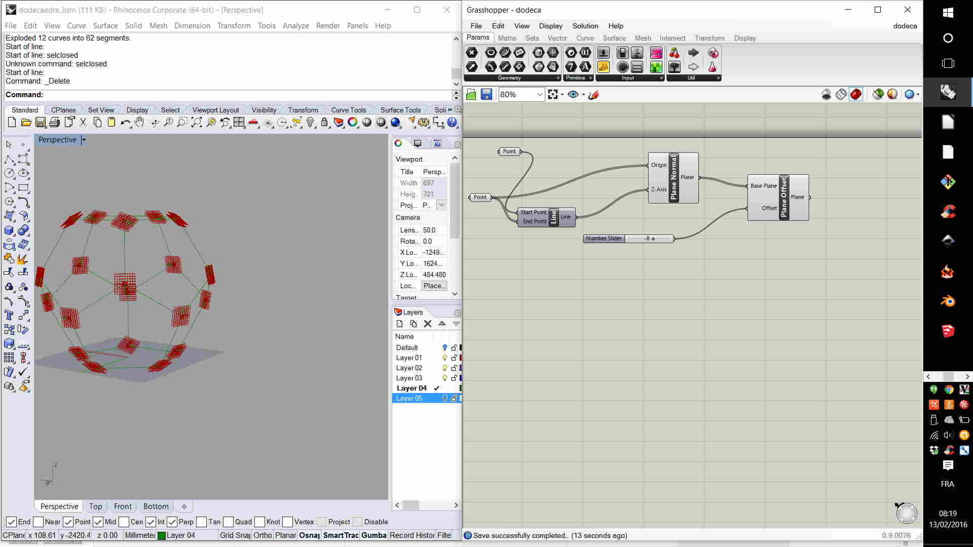 Then, with the created vectors, we defined plans, perpendicular to each vector. We still do not have drawing, but we do have the struture needed for our drawing to be a few offsets away.