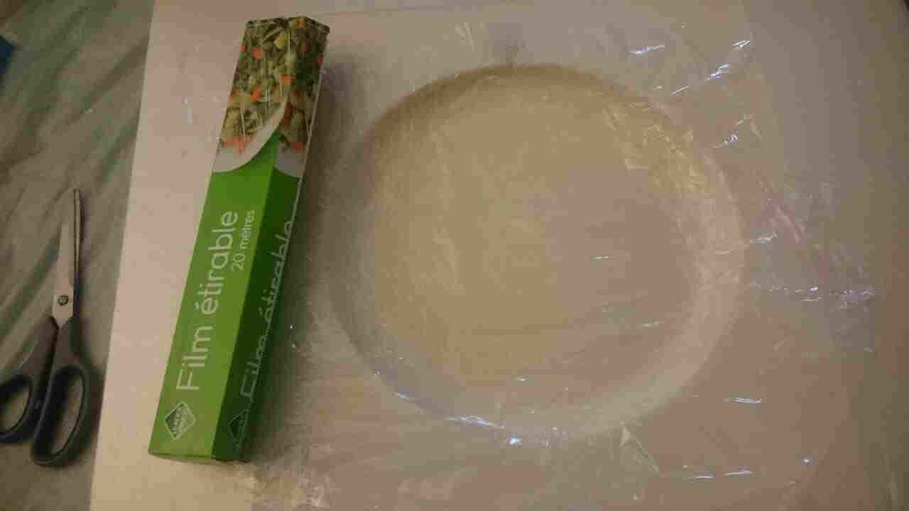 Here is the mould. so as to avoid trouble taking out of the mould, I did put a layer of kitchen plastic.