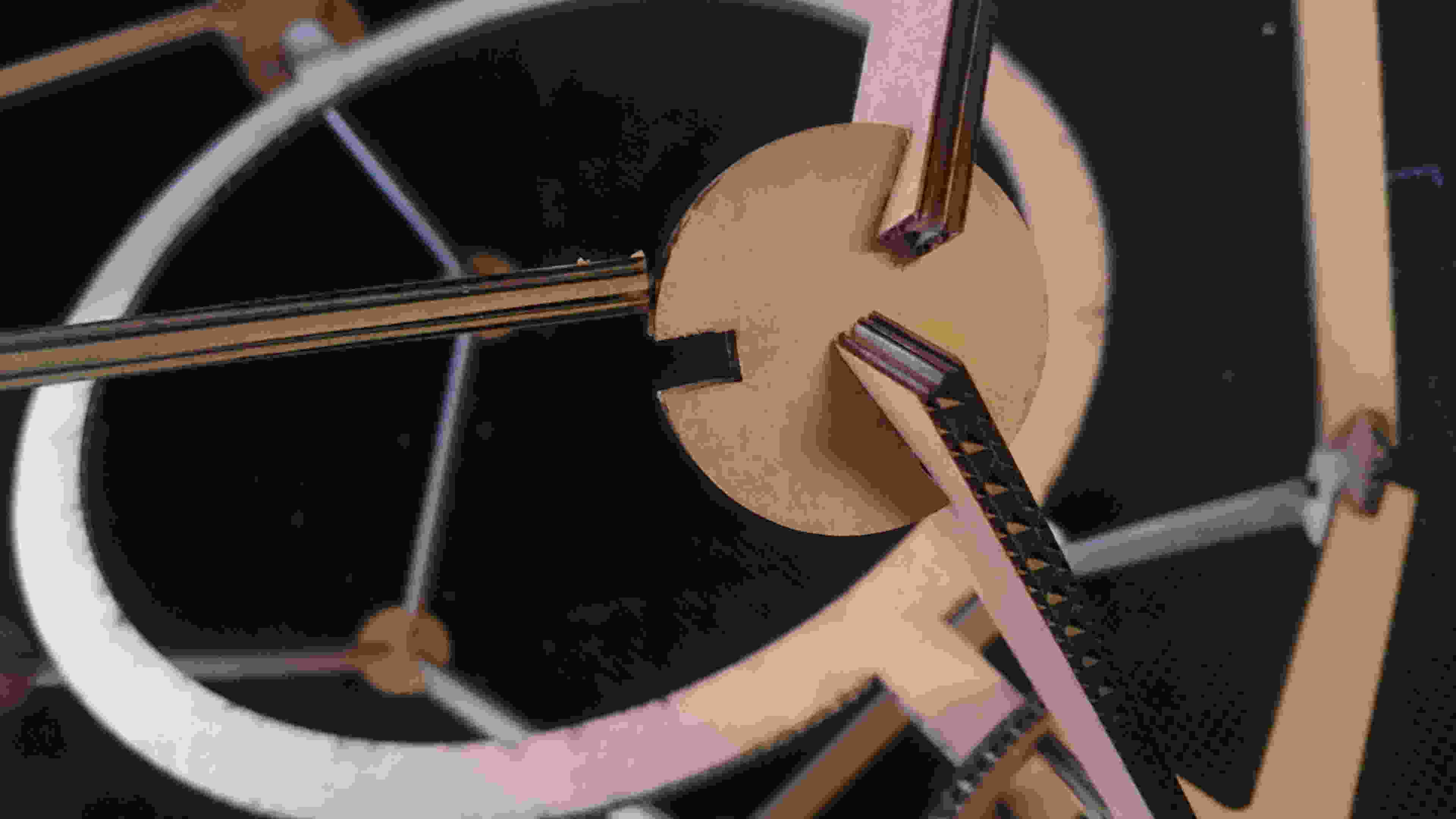 Since we want this ballbot to be able, in any position, to map a space and to monitor its environement, the inside of the ball must be stable. We thought of a sphere, inside wich there would be mobile axis, that allows the center to remain oriented. The joint is one possible between many.
