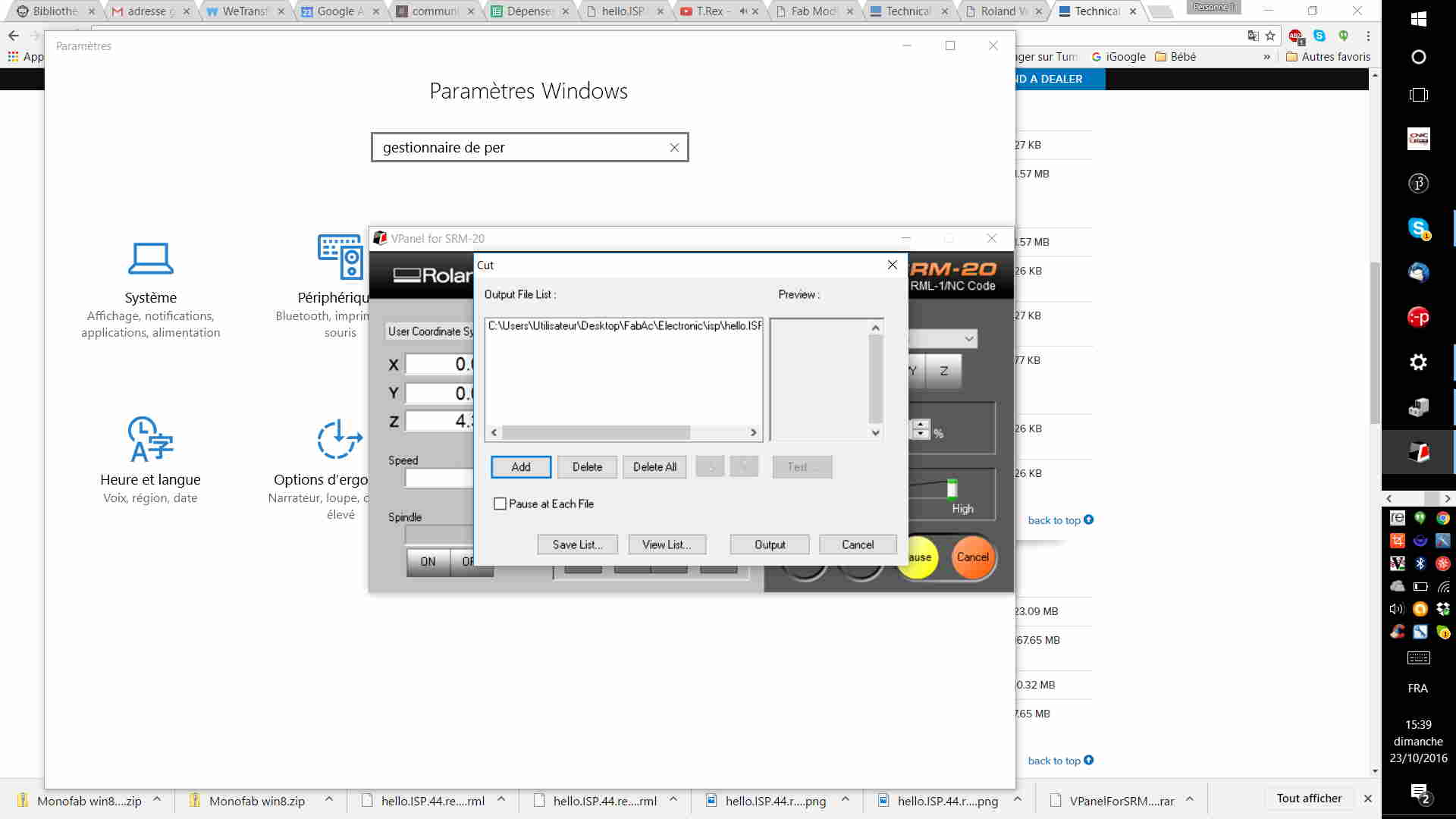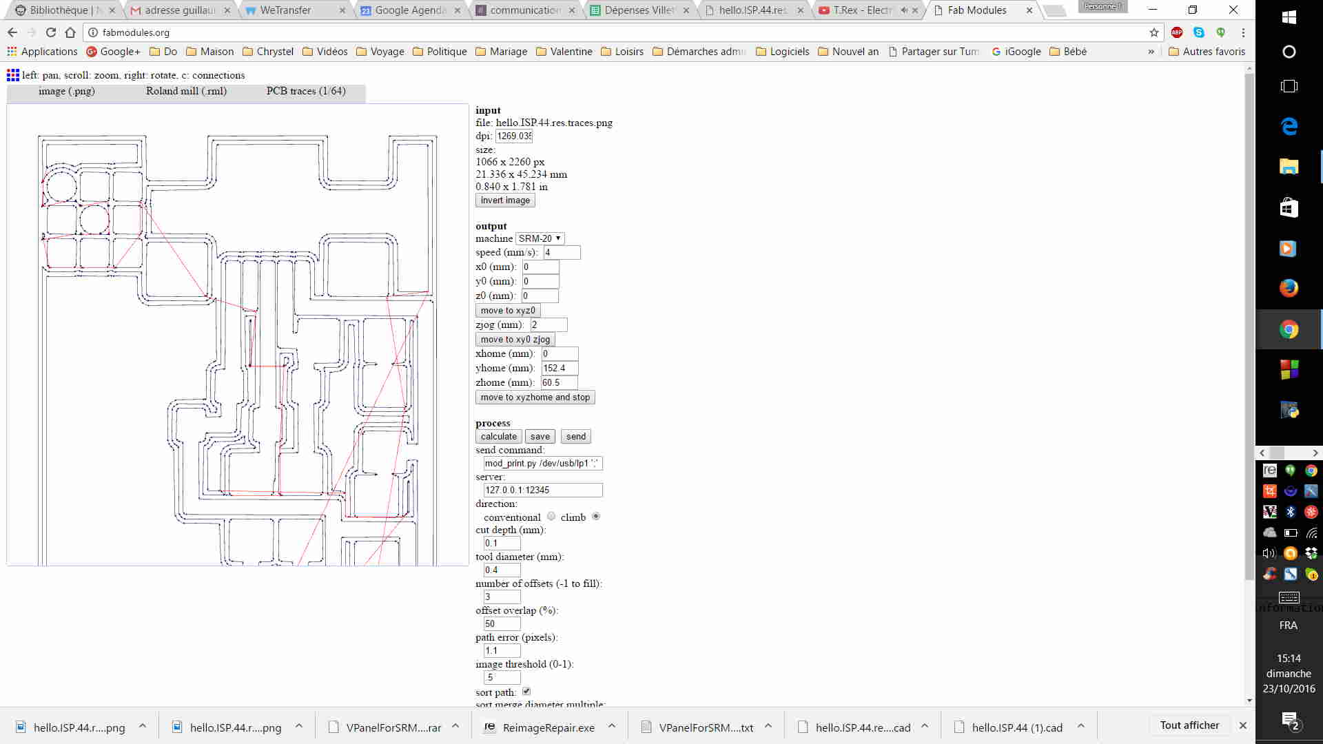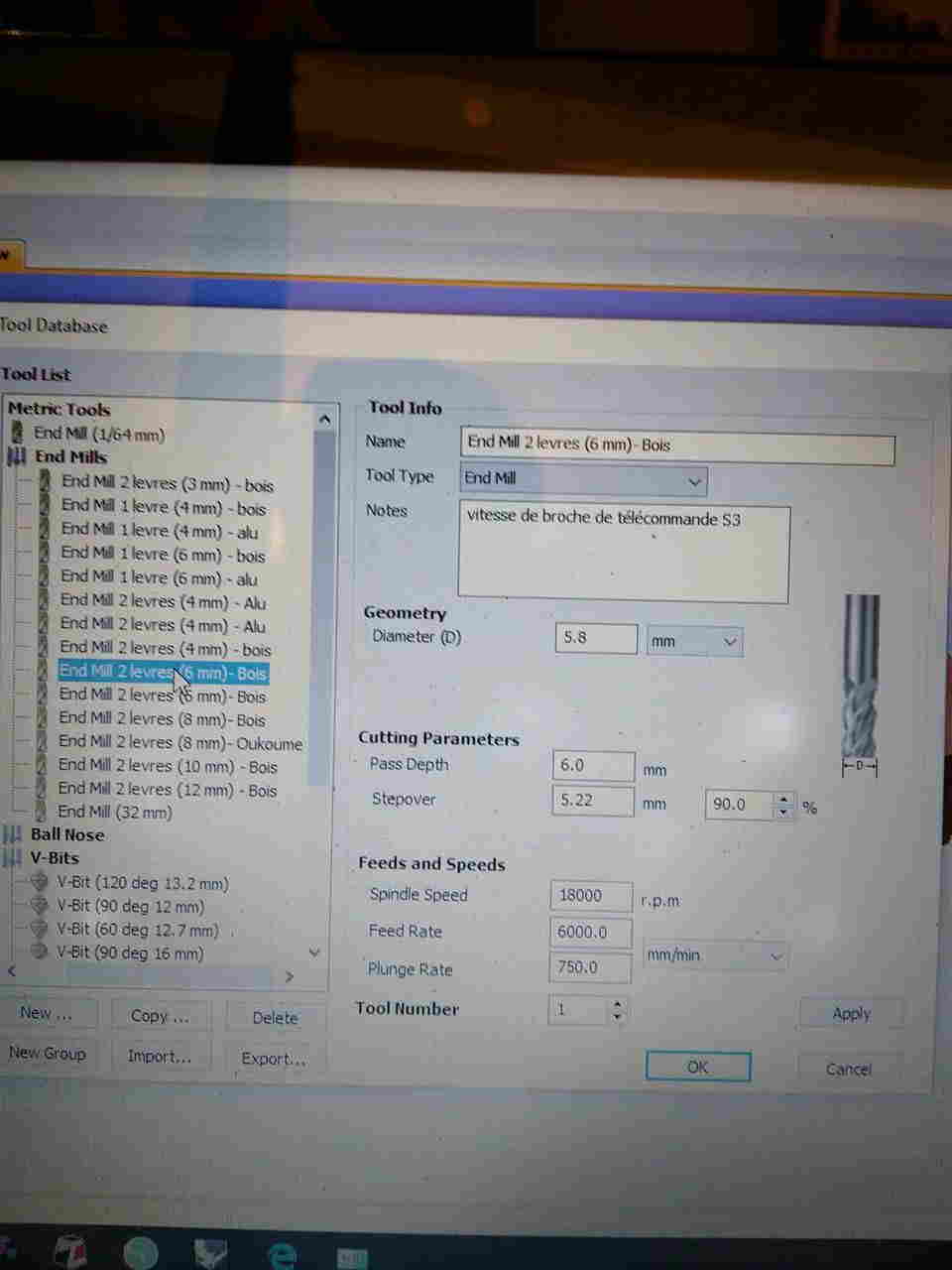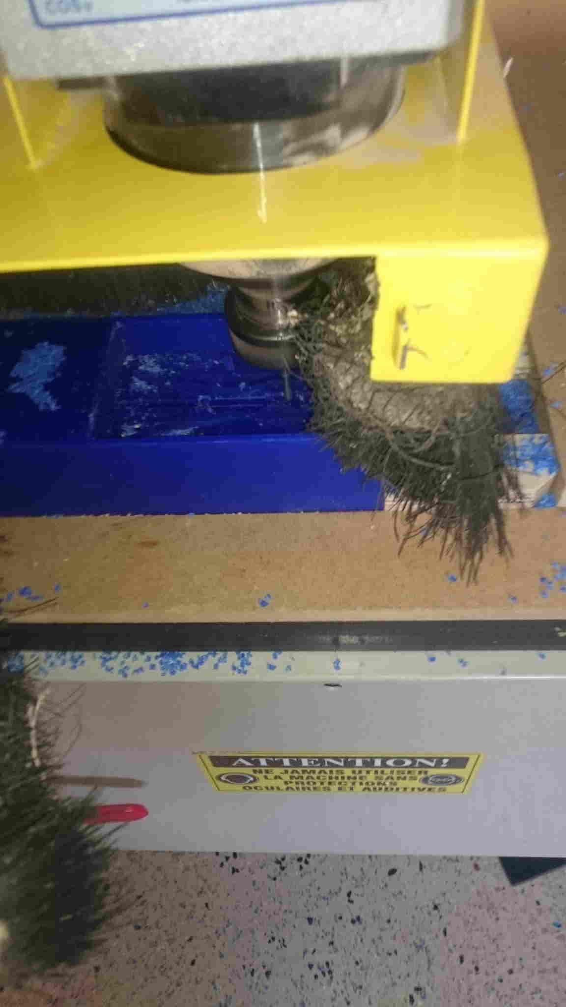 First, using the two lips, six millimeters end mill, we did the rought pass. This does a pattern that wiil remove material, for the finish pass to be a polishing, and not a milling. BE CAREFUL WITH THE HEIGHT OF YOUR TOOL ! It ust be higher than the milling depth.