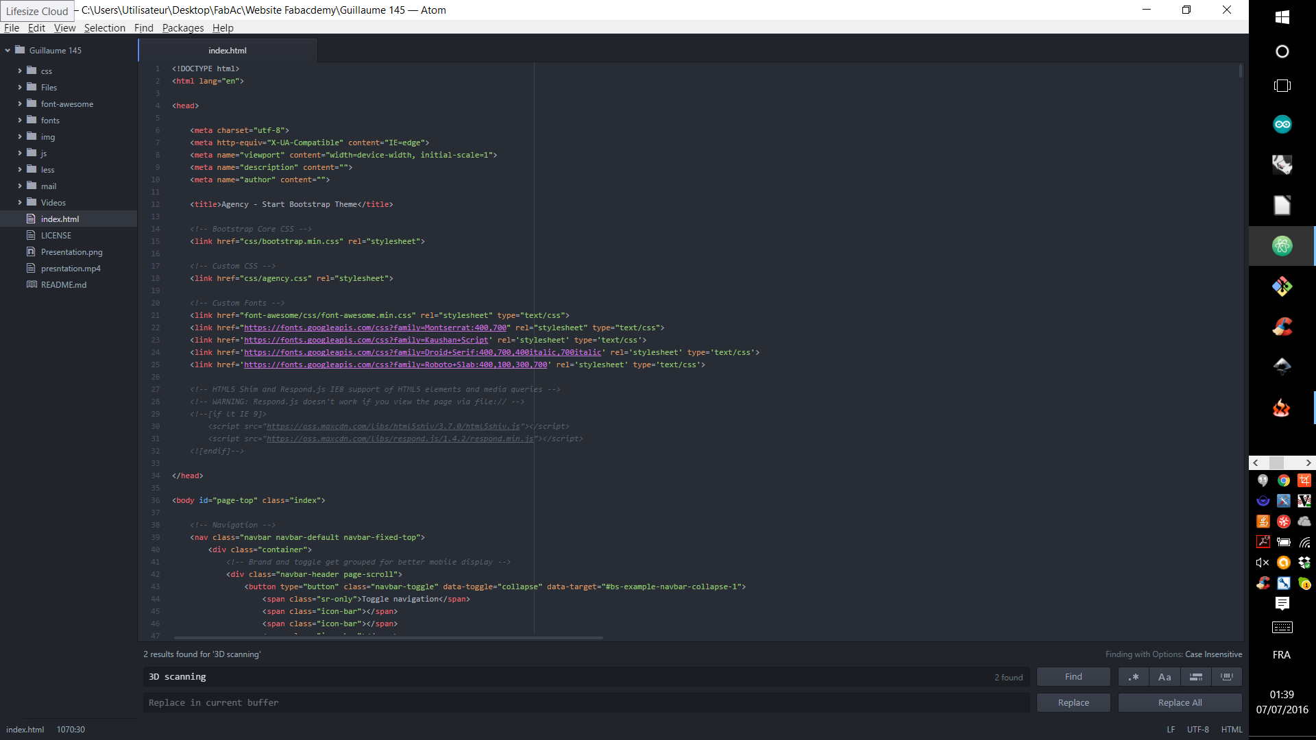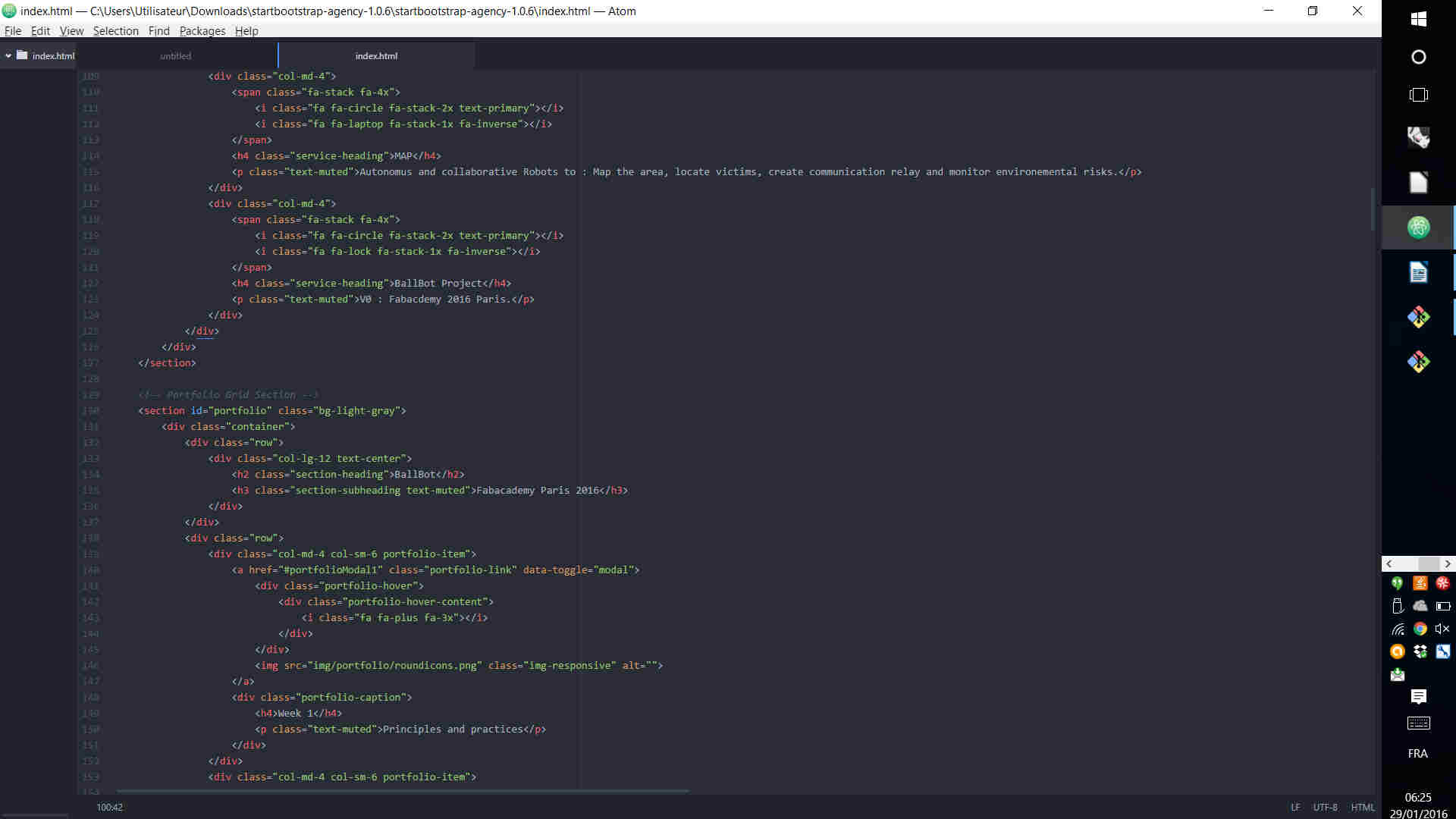 We were given a bootstrap called agency (here). That is a basis you can personalise throught html console. We do use atom. It's workflow looks like that.