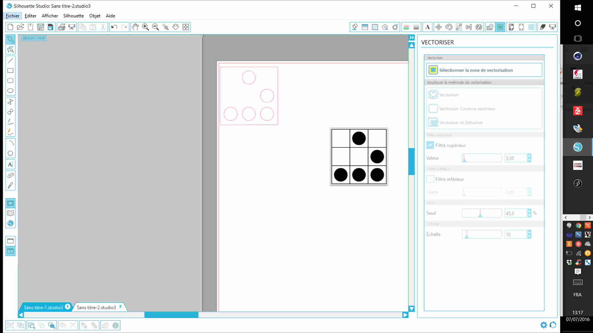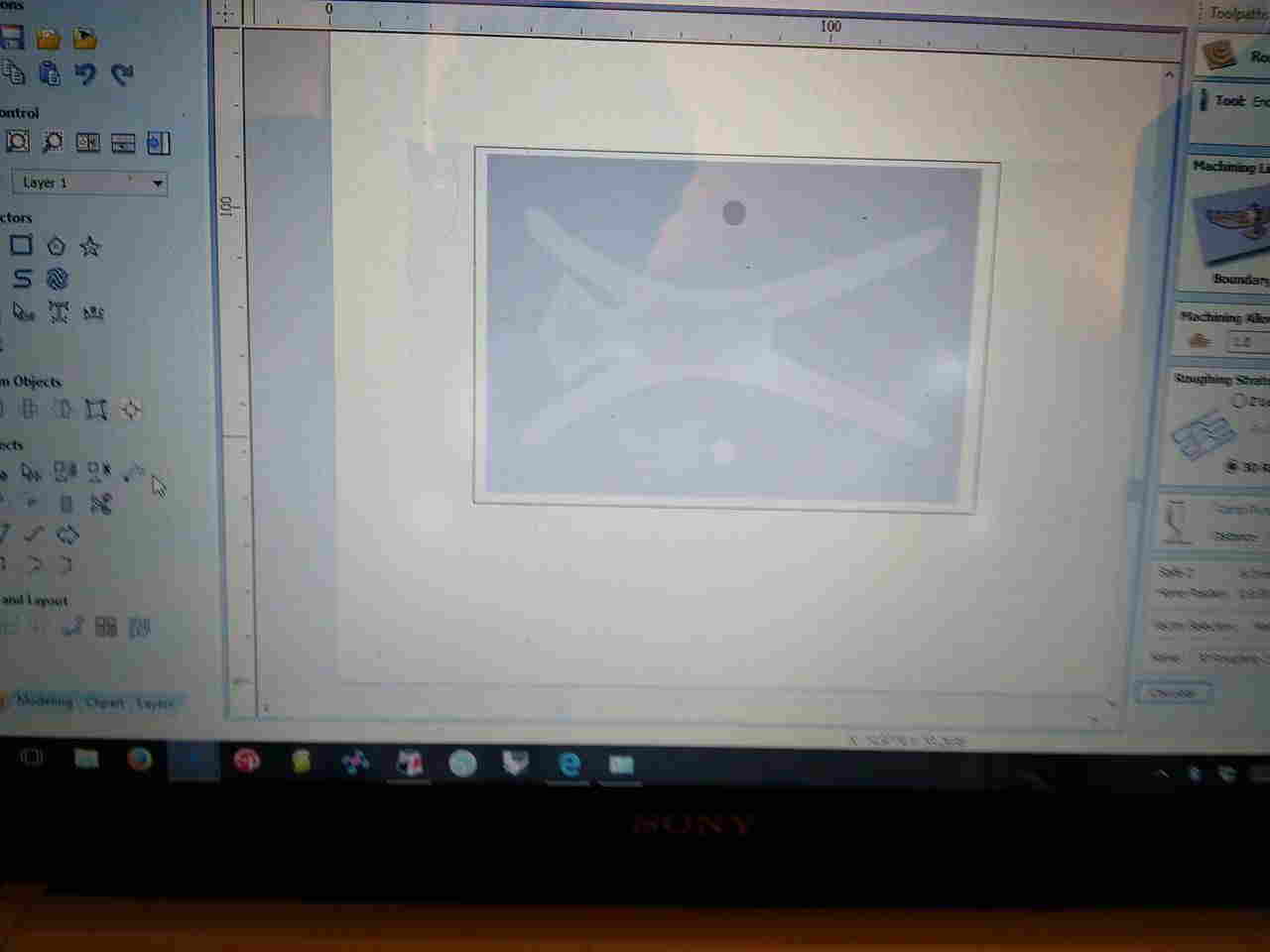 Here, you can see the image imported in V-carve. We proceed as for molding and casting for import. Files parameters are made for a 350x350x85mm material. It is light foam. Tool may break with stronger material like wood.