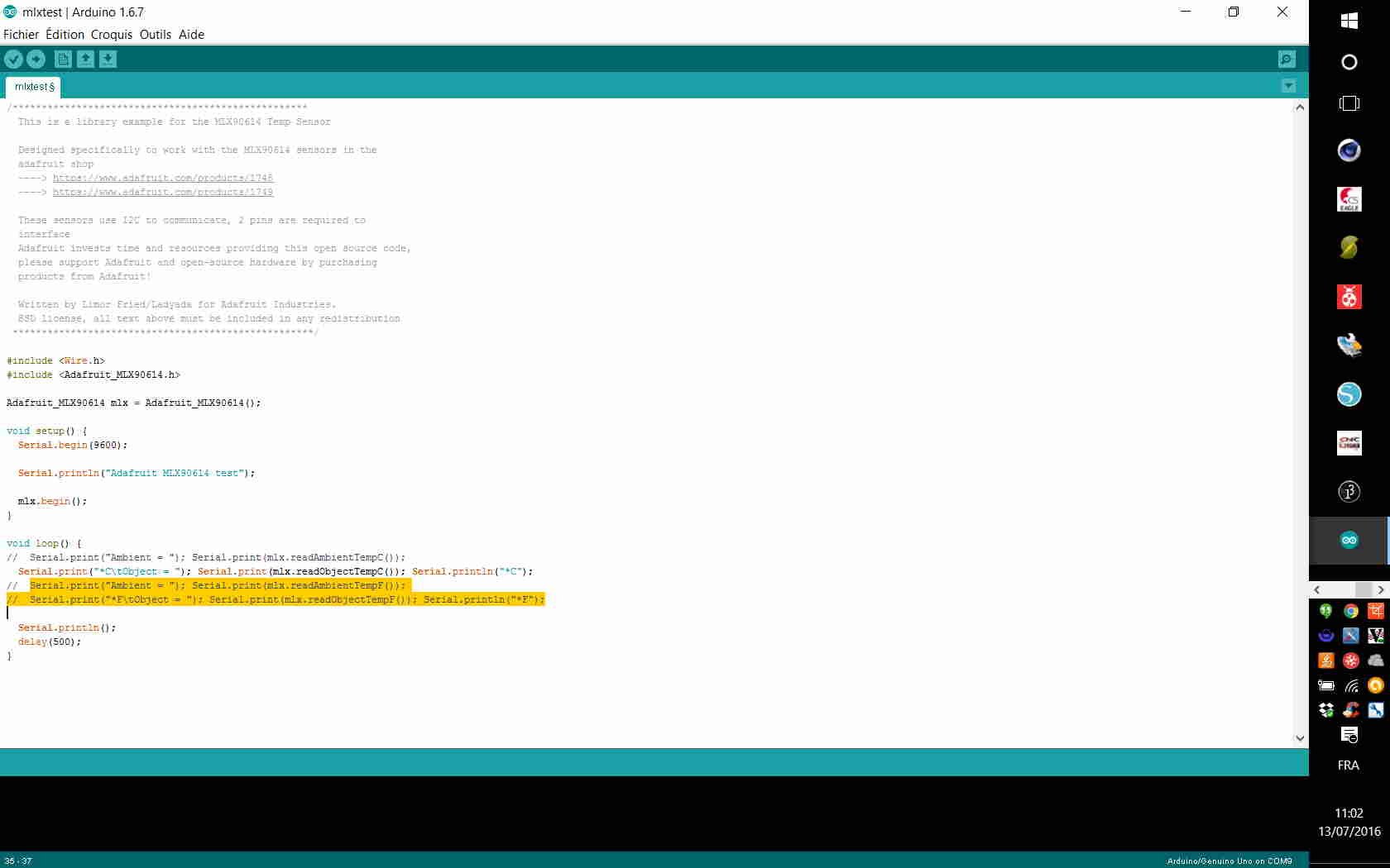 In the image above, we do put a lighter, 10cm from the sensor. As you can read, it's hot. Let's see it next week.