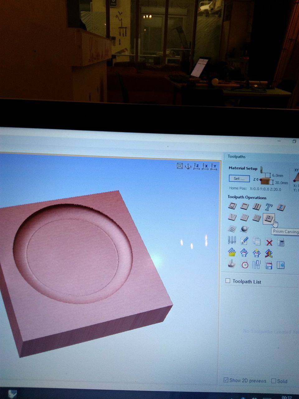 Then, we do a 3D file for the CNC, like in moulding and casting. My file was a frisbee.