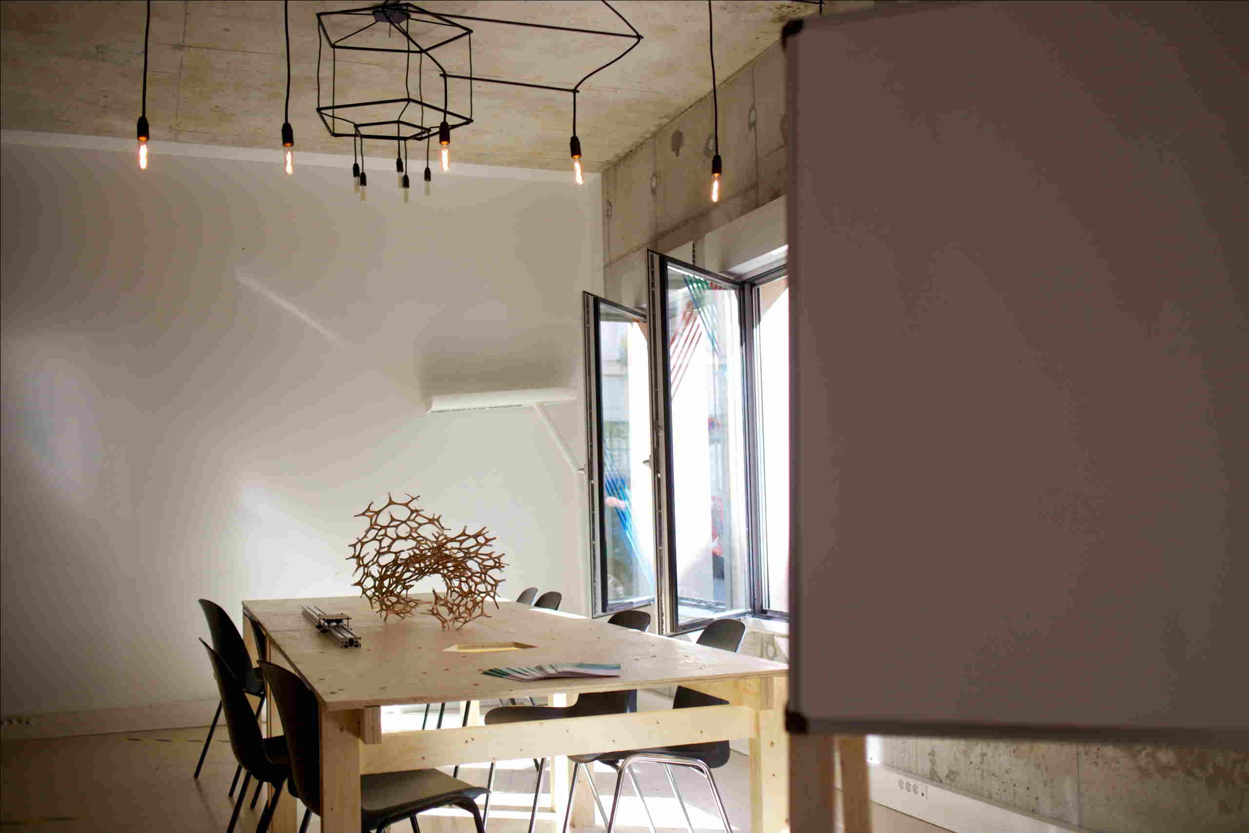 Then, on the first floor, the resident coworking. People usually more involved and who's working space is their own.