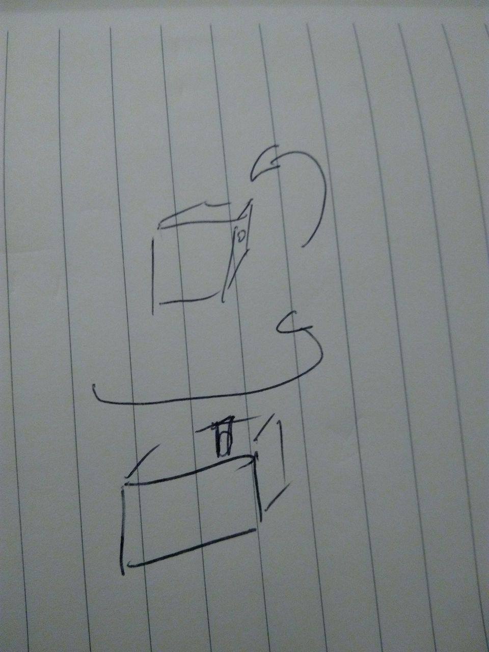 We imagined a movement using 2 servos. We are sorry about the drawings. Hand drawing is not our thing, definatly.