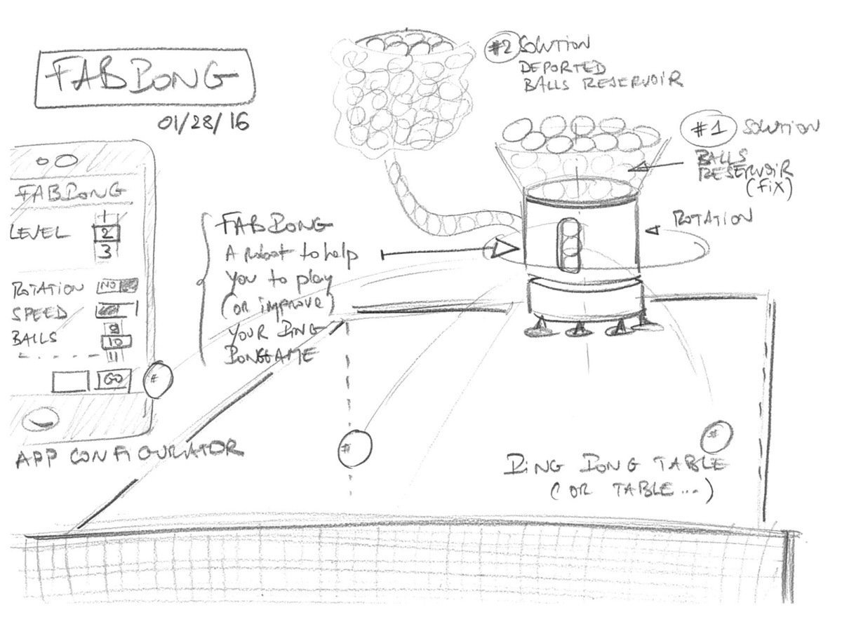 How about to play ping pong alone? I thought it would be nice to create a machine (the "FabPong") capable to launch balls, like a virtual sparring partner, in order to finally meet (I hope!) the recurrent question that every tennis table player has asked to himself at least once!