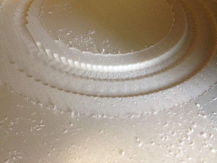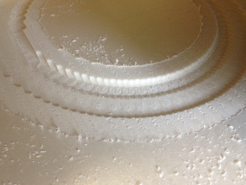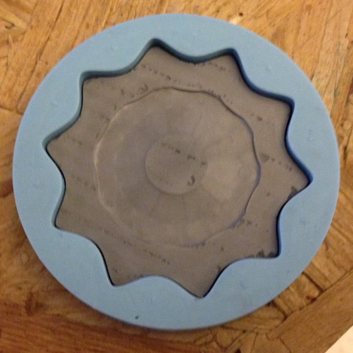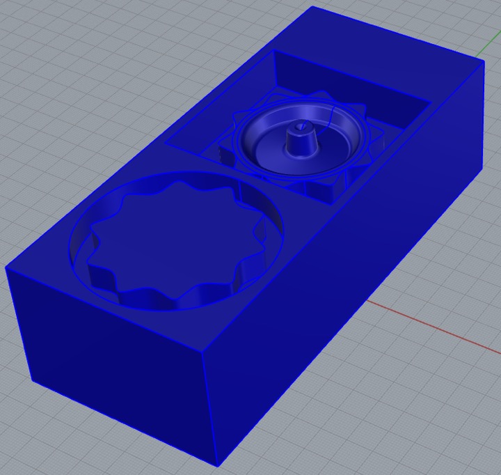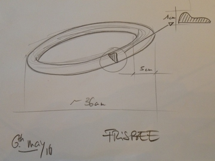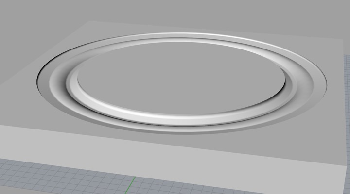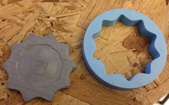 A difference boolean operation between the polystirene brick to mold (40cmx40cmx4cm) and the frisbee.